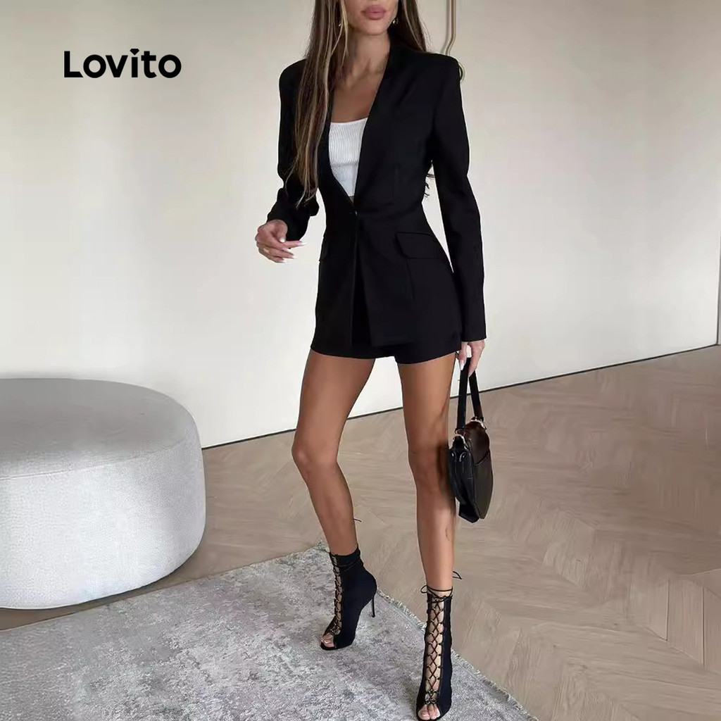 (Trendy) Lovito Blazer elegante de botão liso para mulheres LNL100349