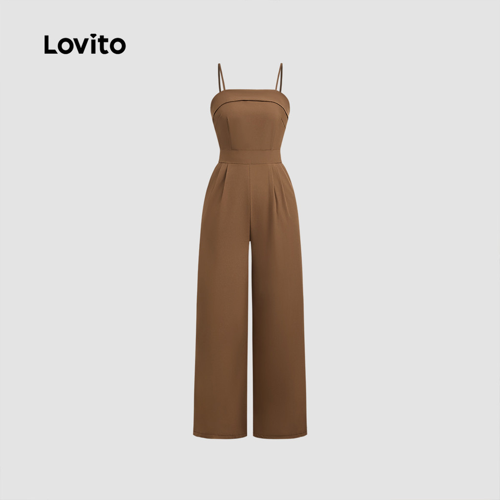 Lovito Macacão Elegante com Bolsos Primavera/verão Caqui para mulheres LBL28090
