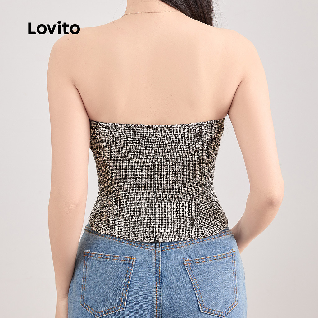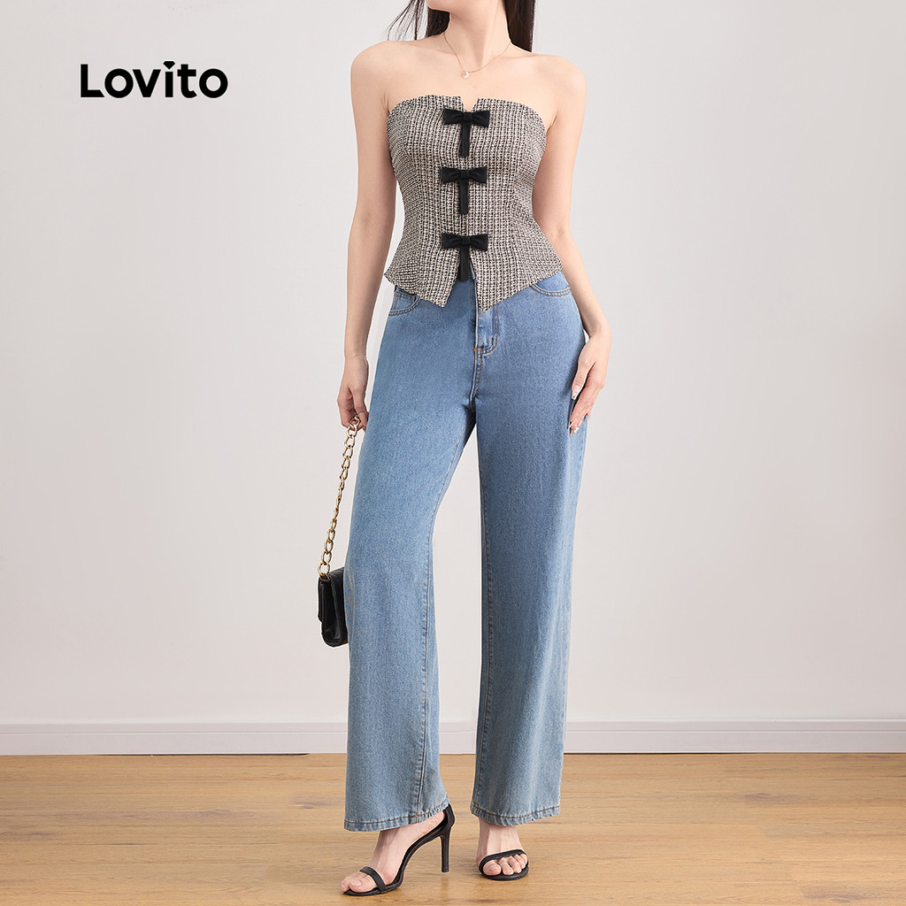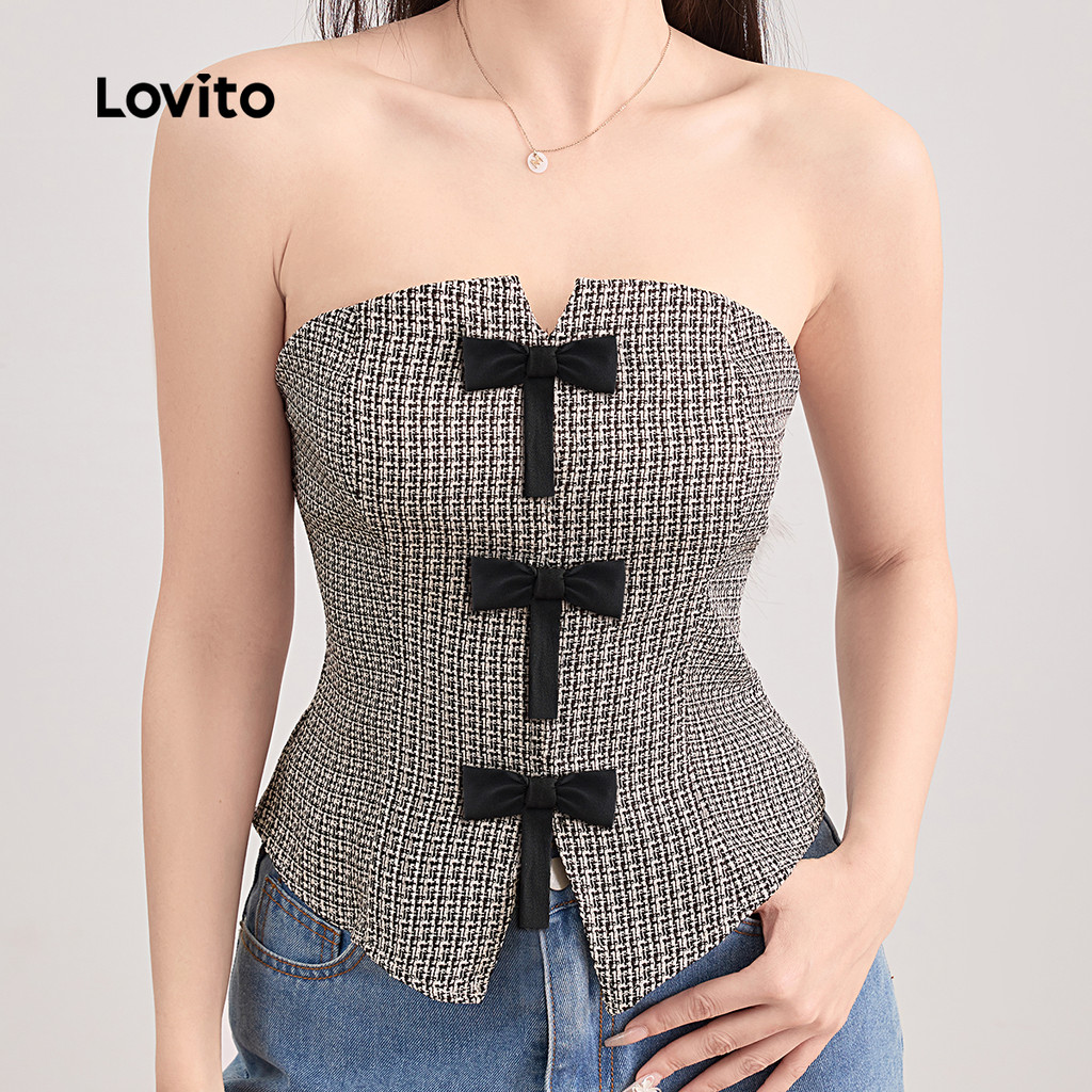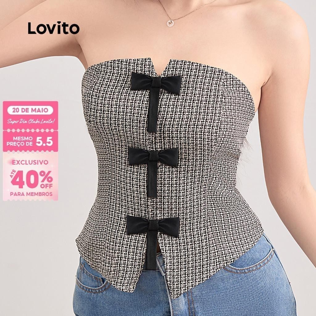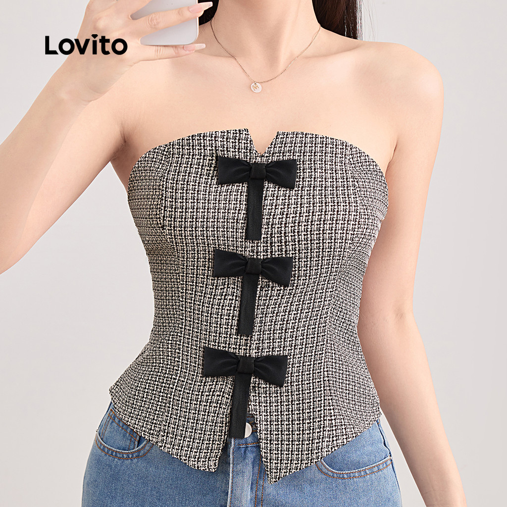 Lovito Casual Plain Colorblock Bow Top para mulheres L121MD229