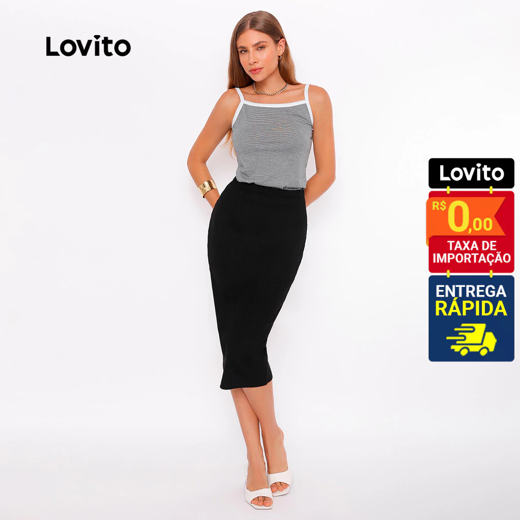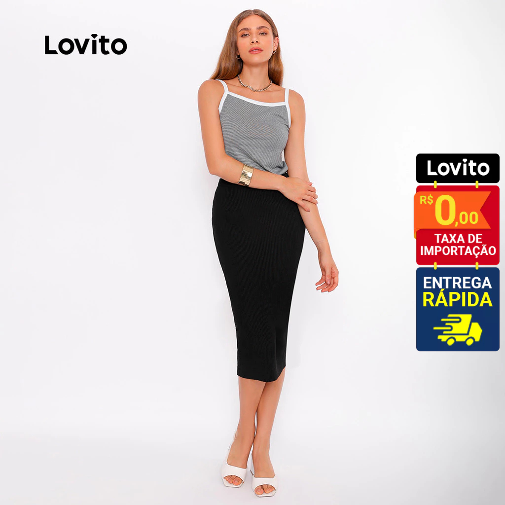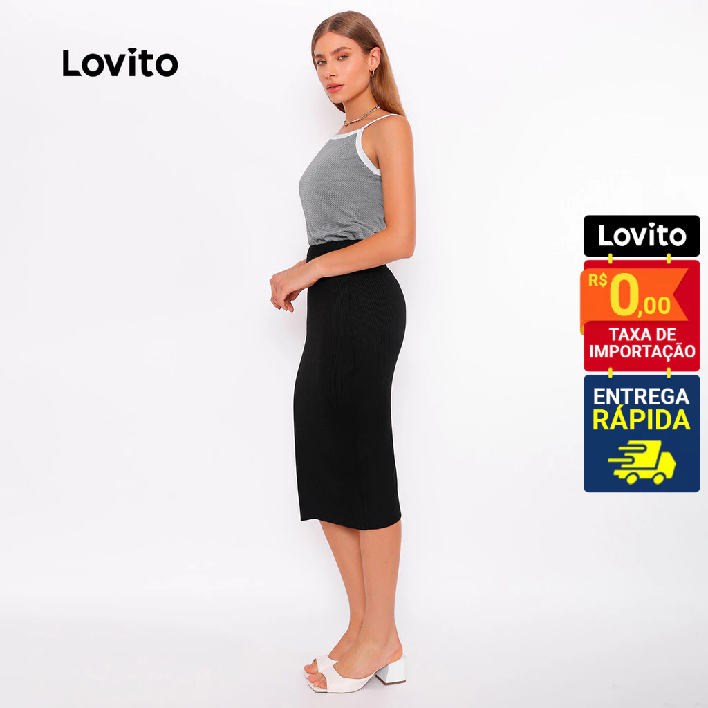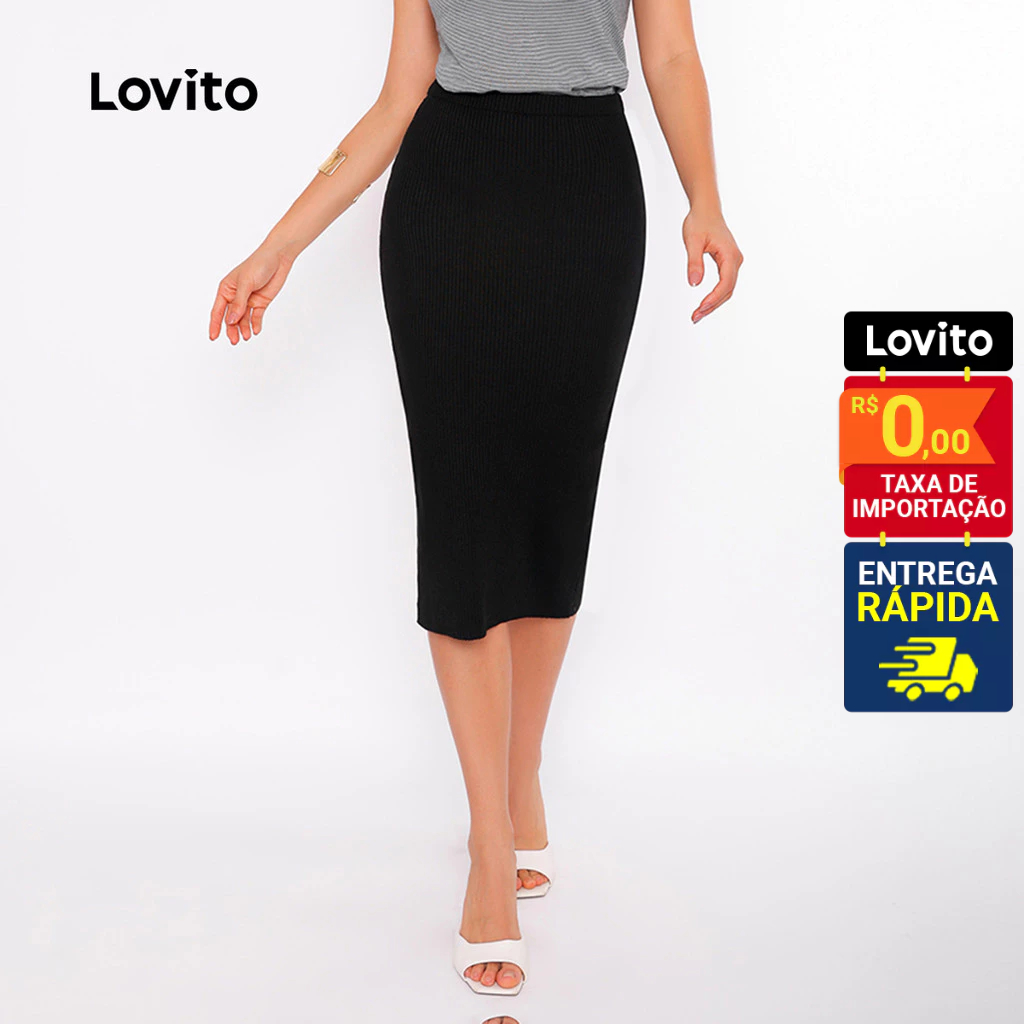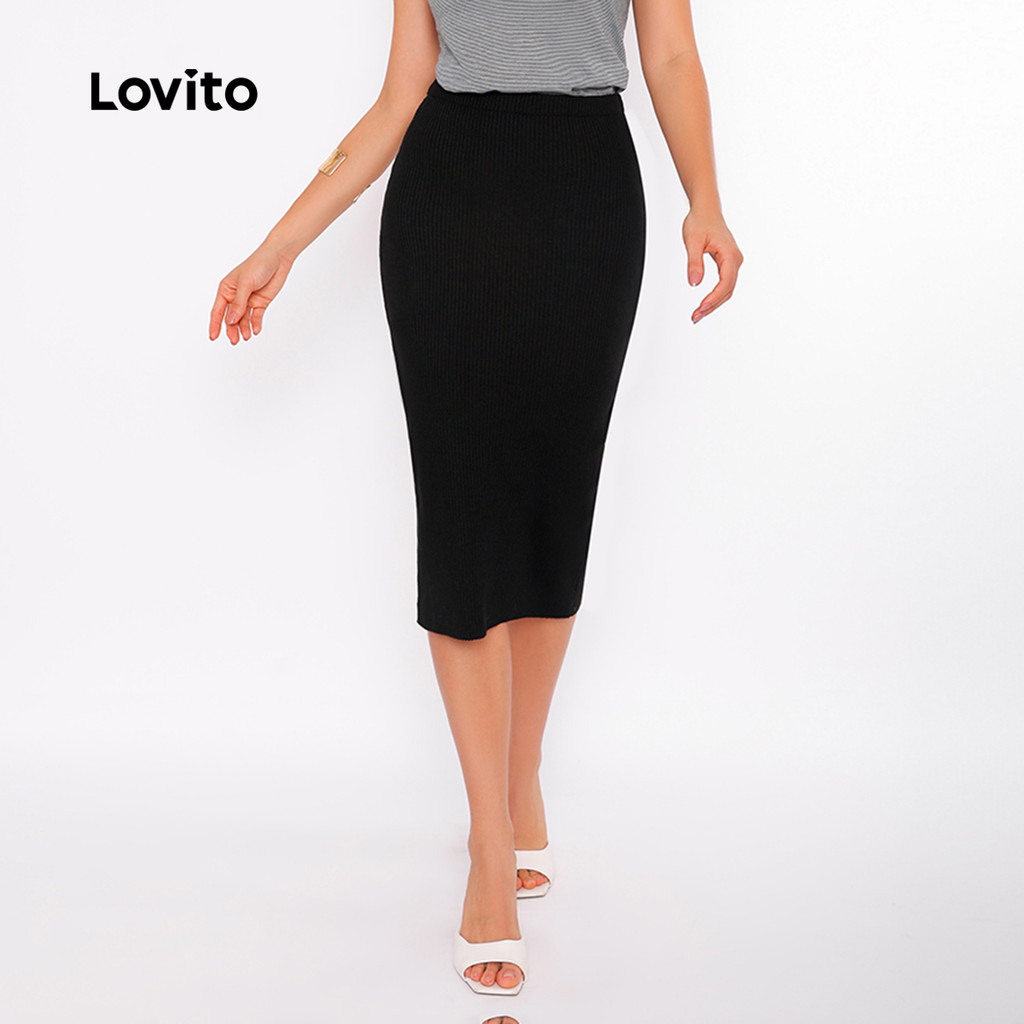 Lovito Saia Lapis Preta Tricot Feminina Reta LB380BRL409