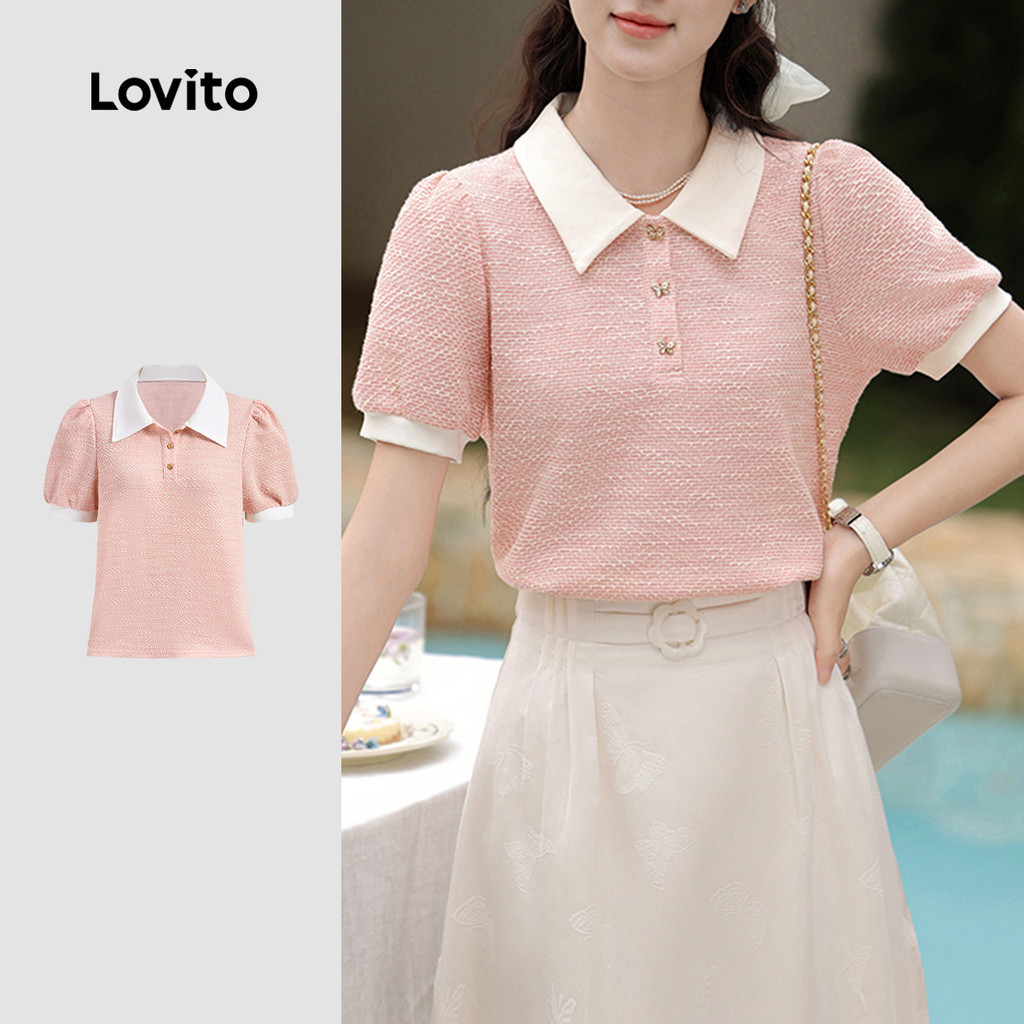 Lovito Blusa Casual Cores Contrastantes Blusa Verão/Primavera Para Mulheres L129ED376