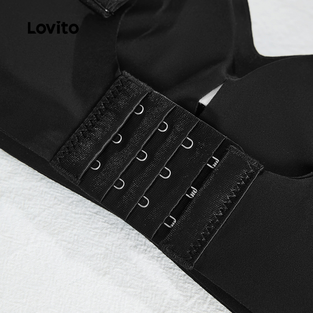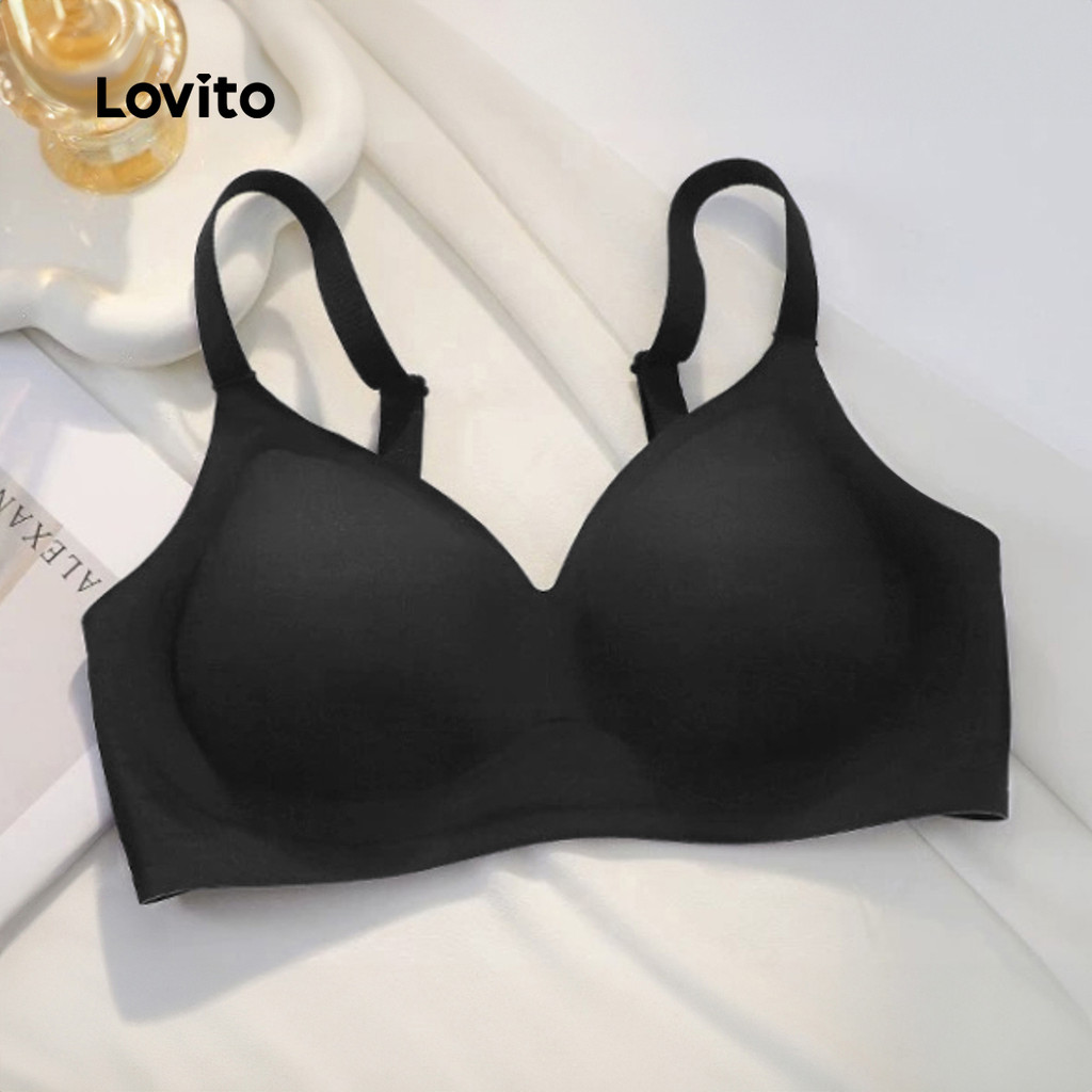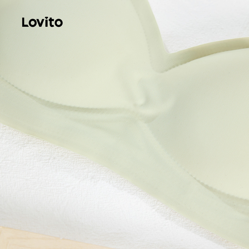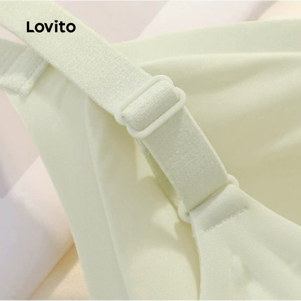 Lovito Sutiã Push Up Feminino Casual Sem Fio Canelado Malha Verão Primavera Champanhe LNA104020