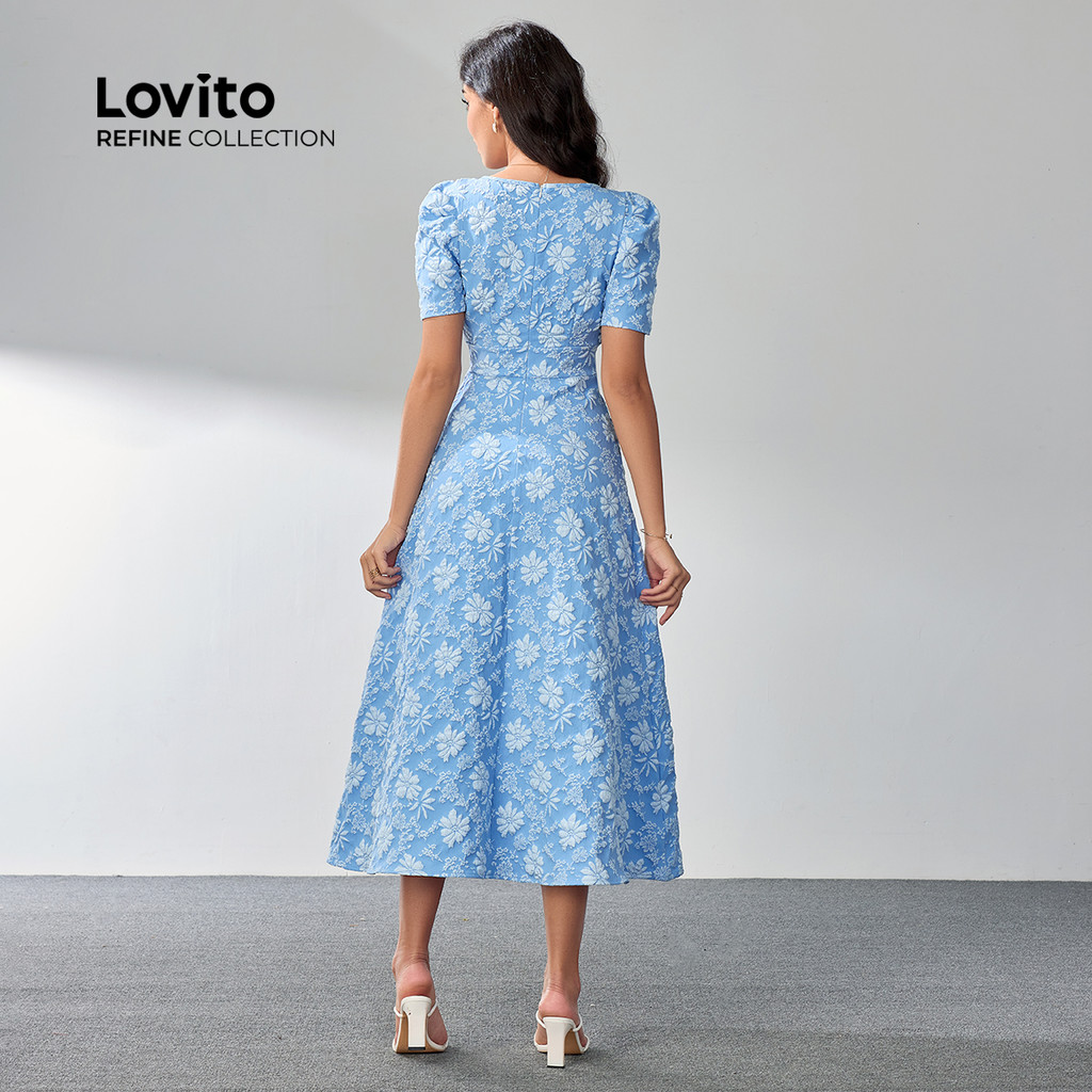 (Lovito Refine) Vestido Elegante Festa De Fim De Ano Branco Com Estampa Floral Zíper E Drapeado Verão/primavera LR4LD126