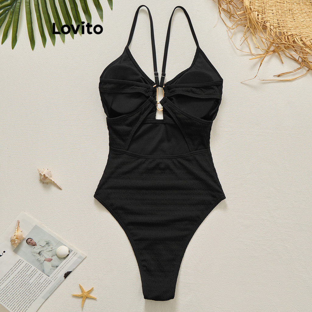 Lovito Sexy One Pieces Metal Recortado Verão/Primavera Uma Peça Para Mulheres LBL20675