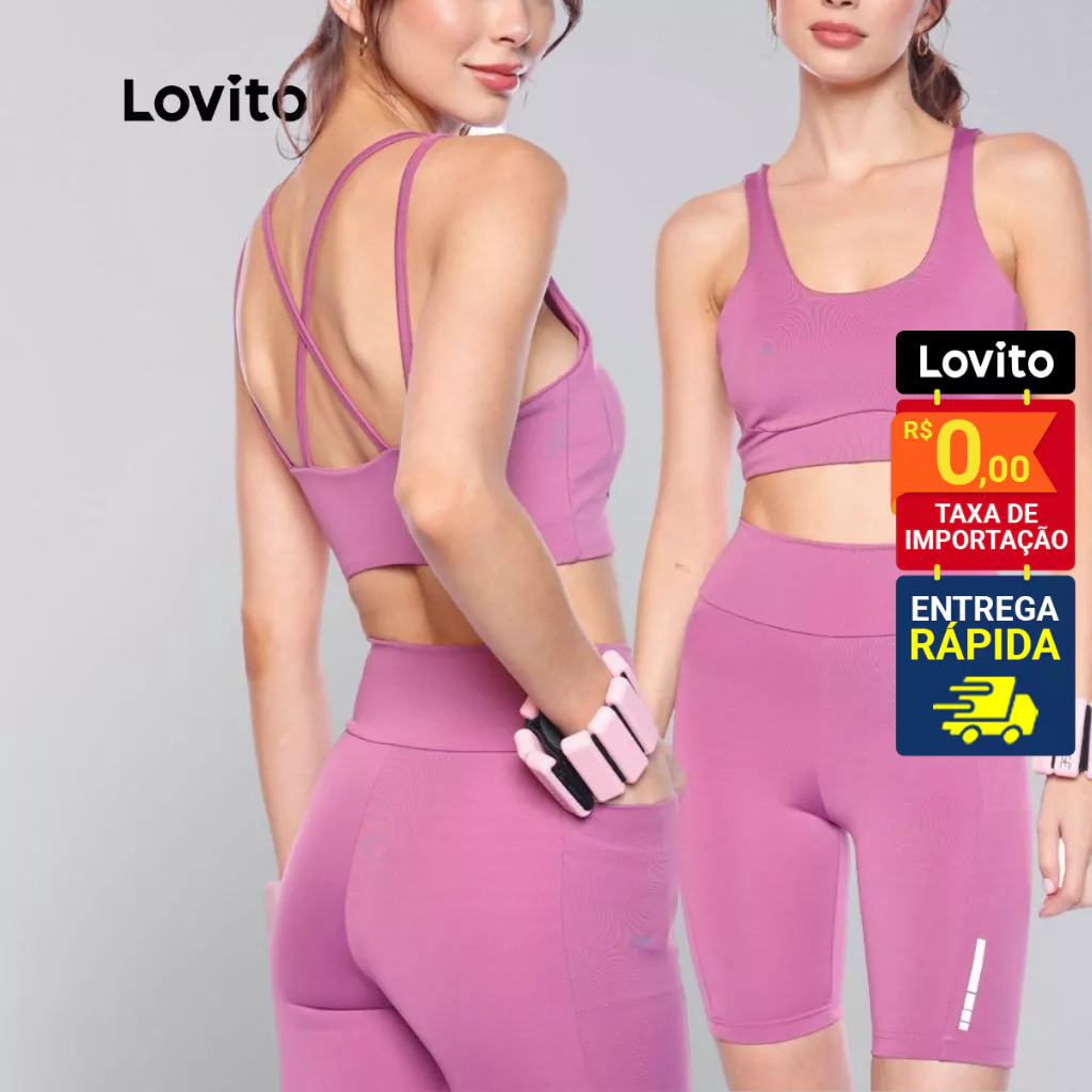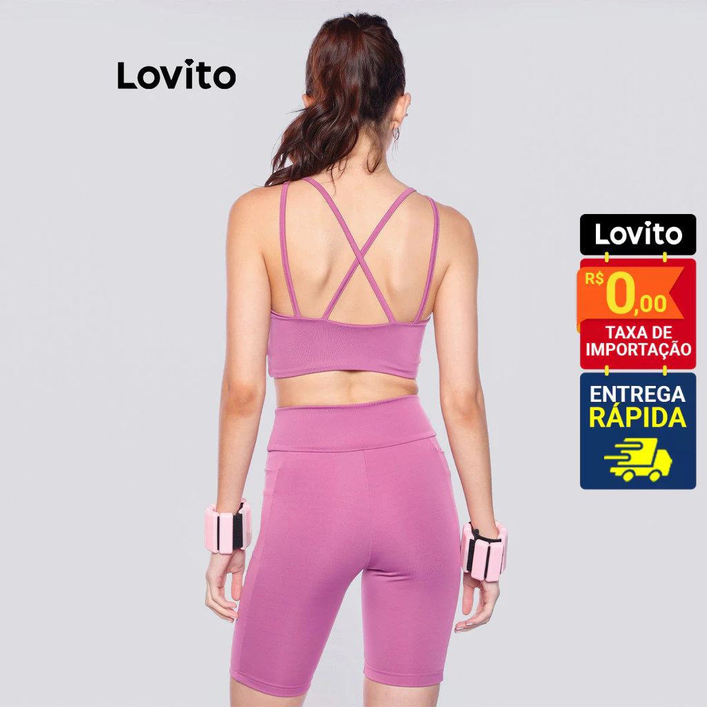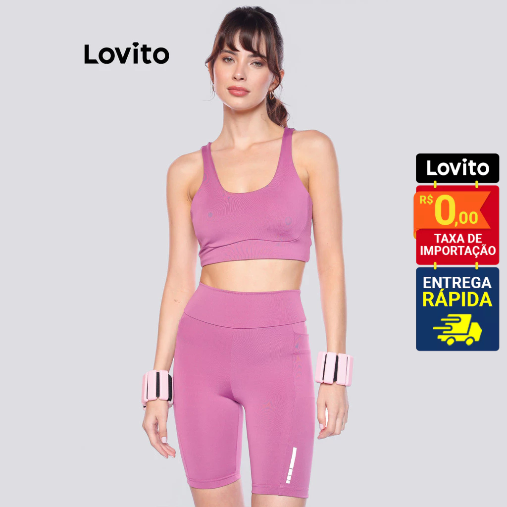Lovito Bermuda Feminina Esportiva Ciclista Com Bolso para Celular e Detalhe Refletivo LB1247BRL1277