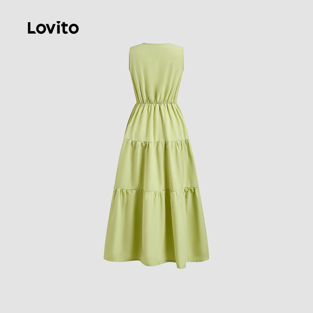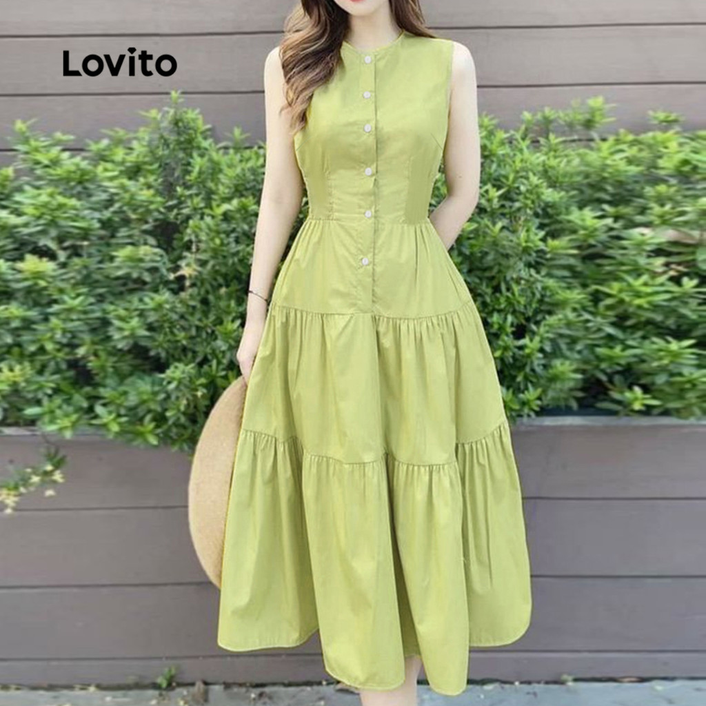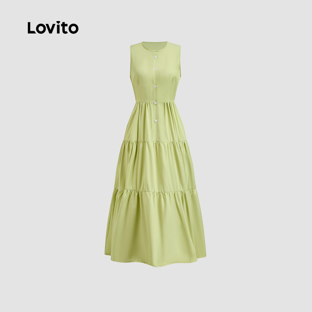 Lovito Vestido Casual Estruturado Com Botões Verde Para Primavera/verão L149ED1235