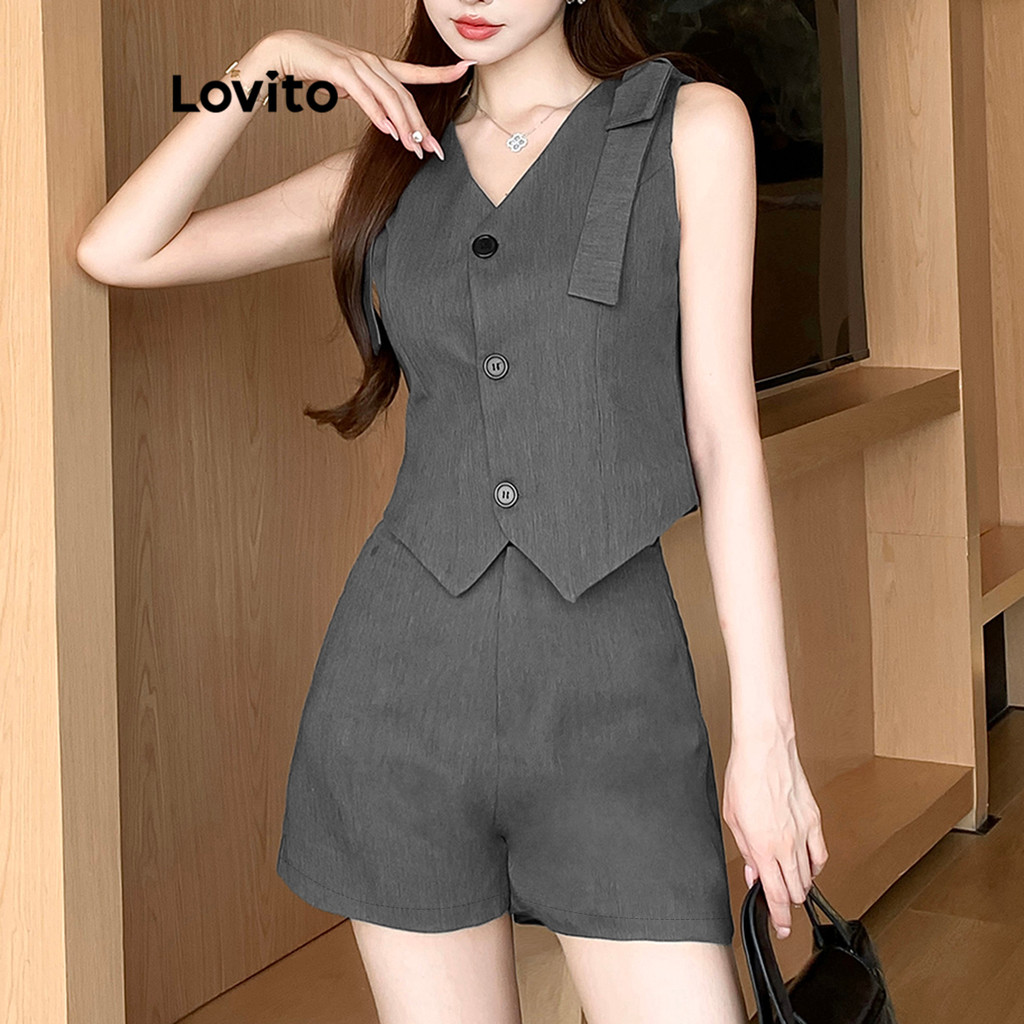 Lovito Conjuntos De Shorts Casuais Com Laço Liso Para Mulheres LNE66567