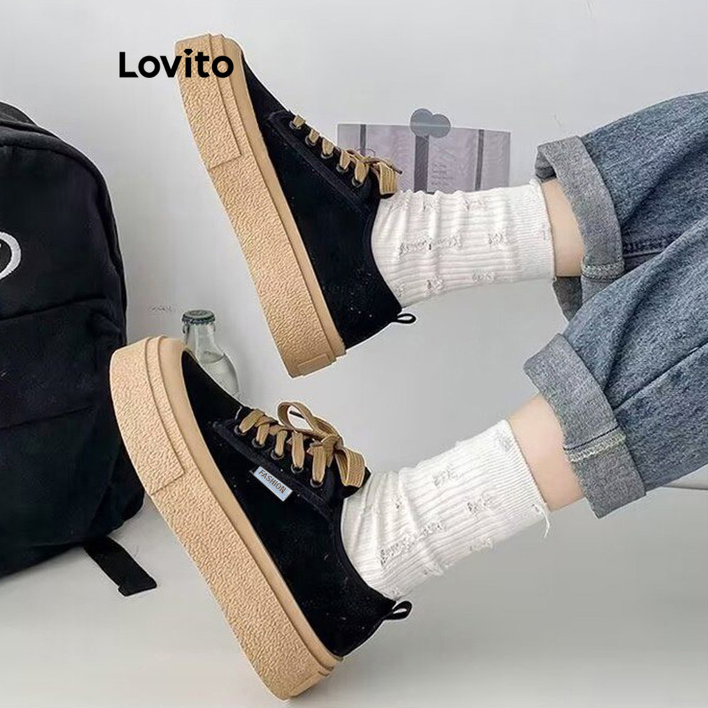 Lovito Tênis esportivos com sola grossa e aparência formal simples para mulheres LFA45405