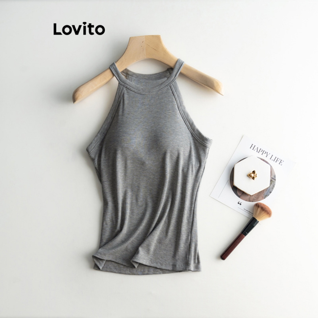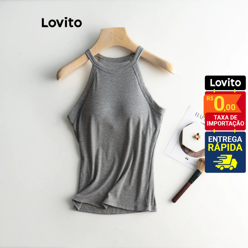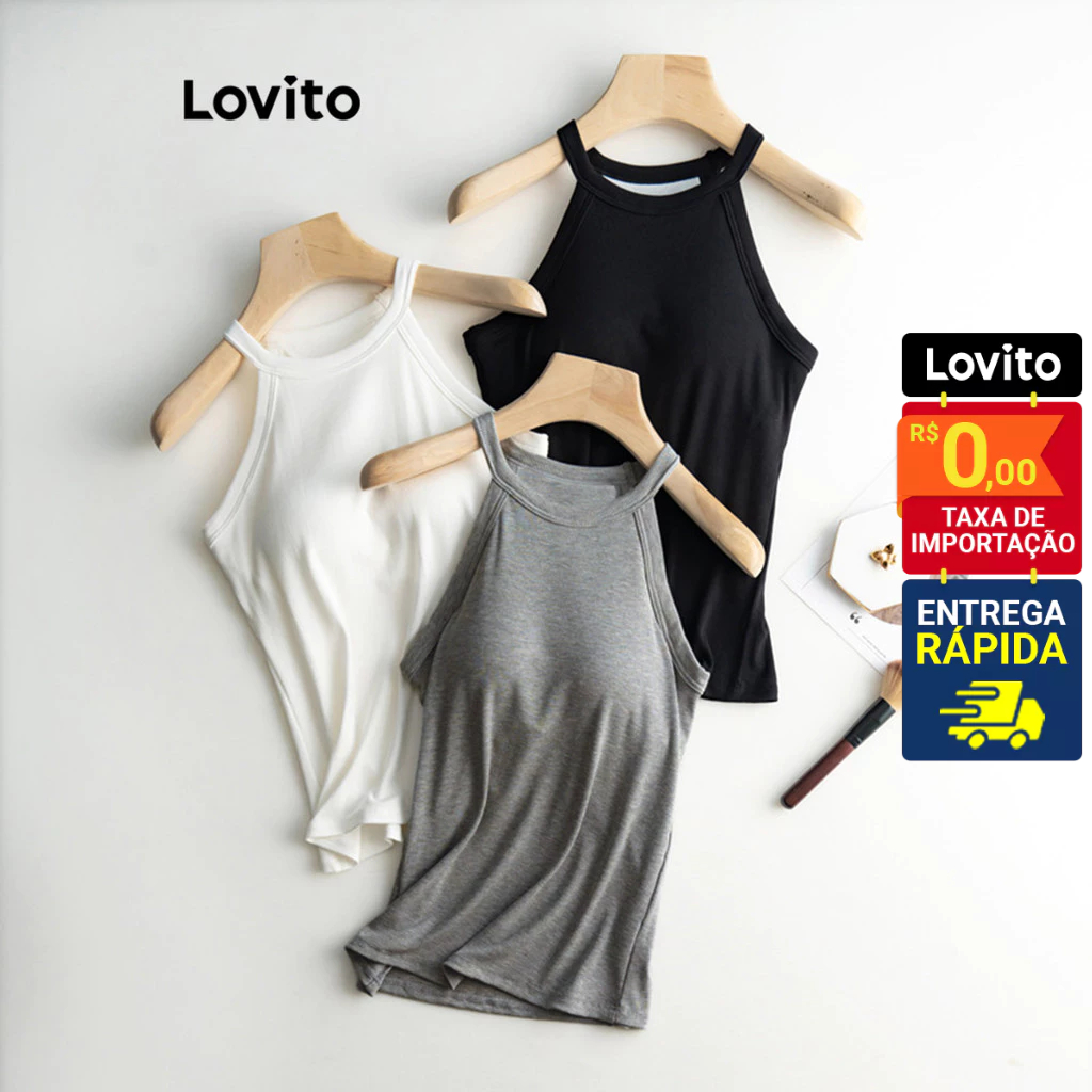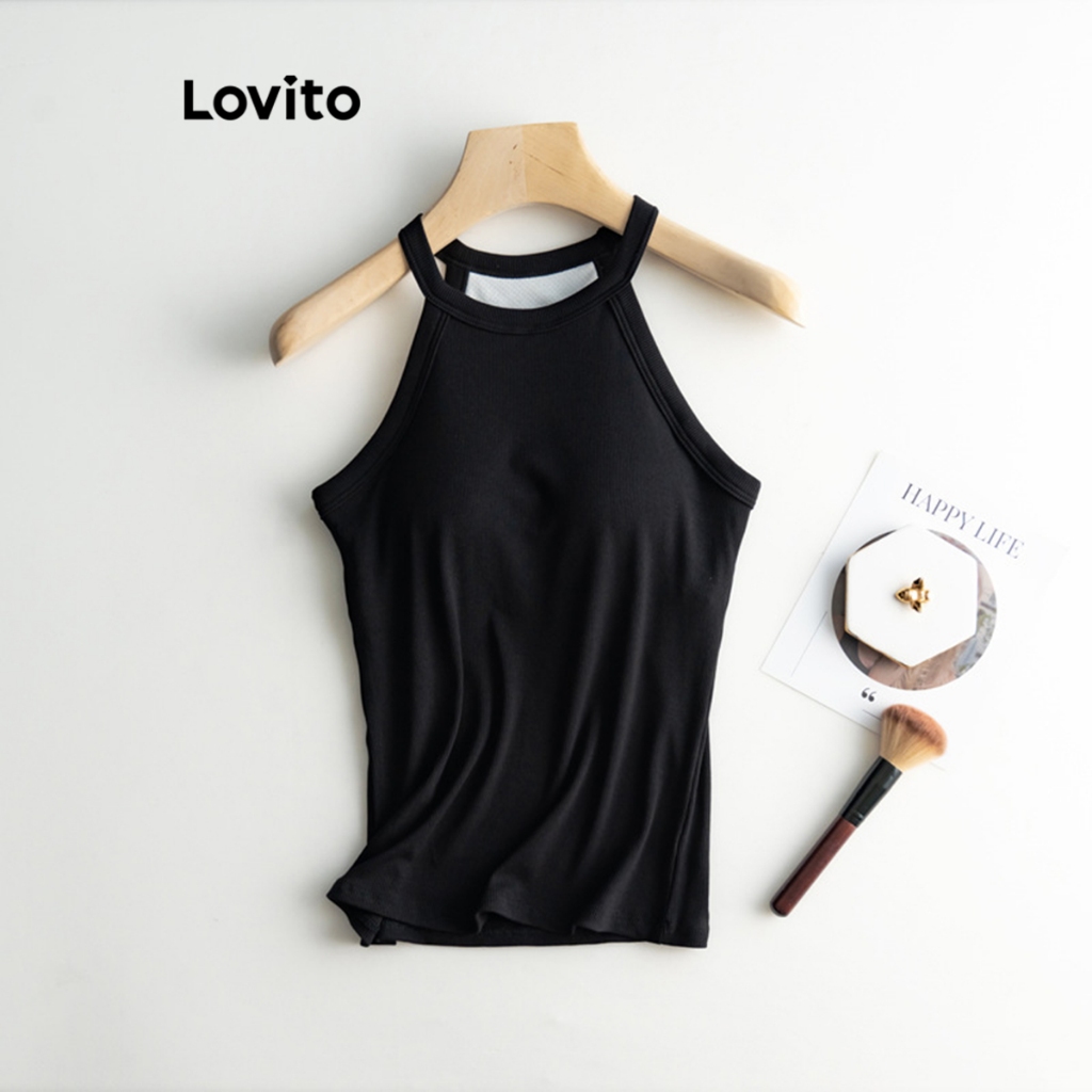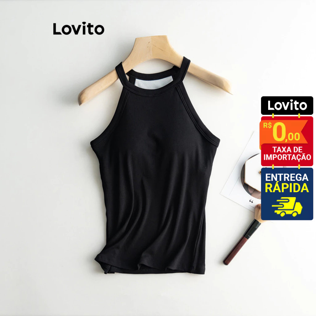 Lovito Regata Casual Feminina Básica com Bojo Fixo LNL36137
