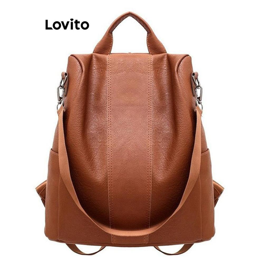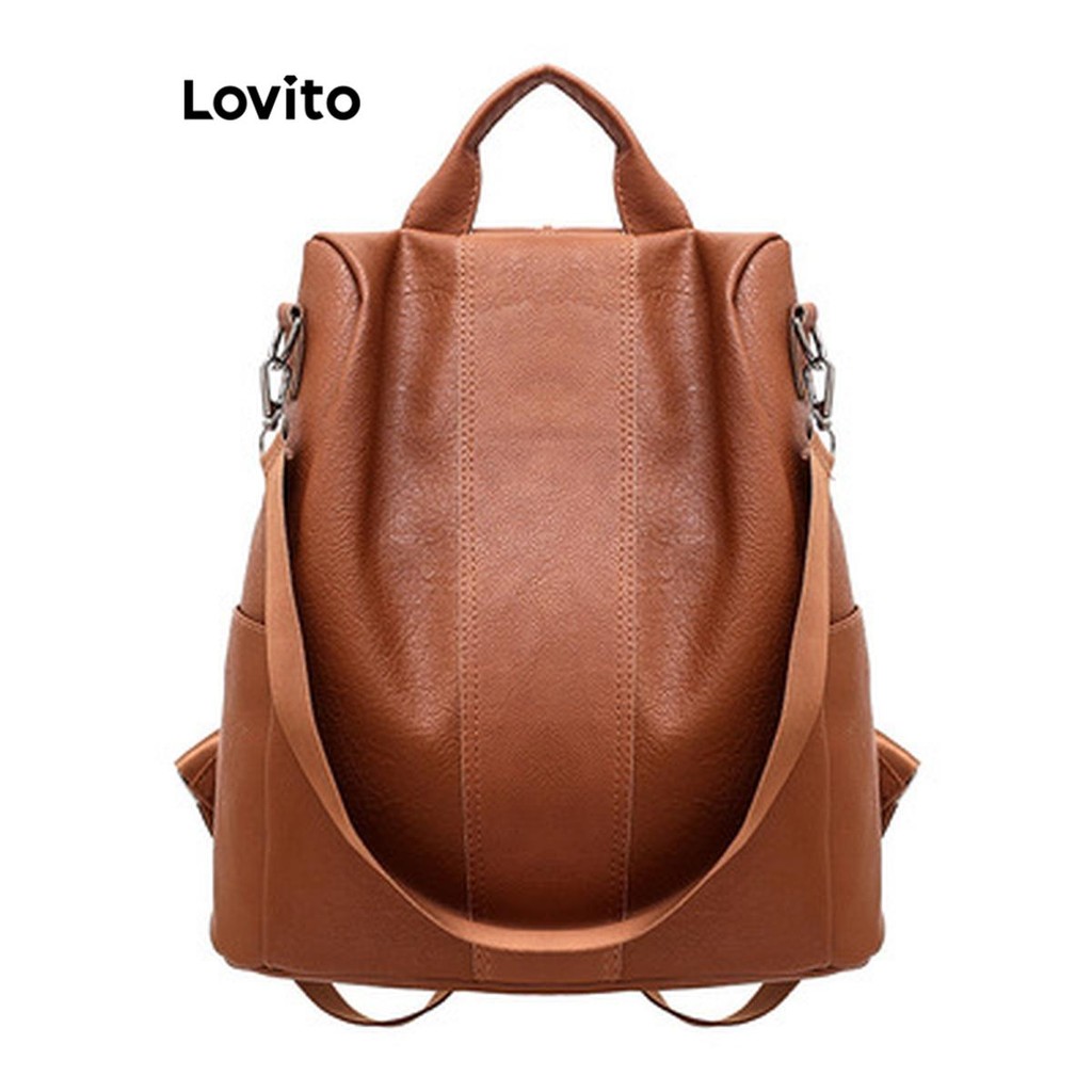 Lovito Mochila Casual simples antirroubo de couro macio para mulheres LFA65161