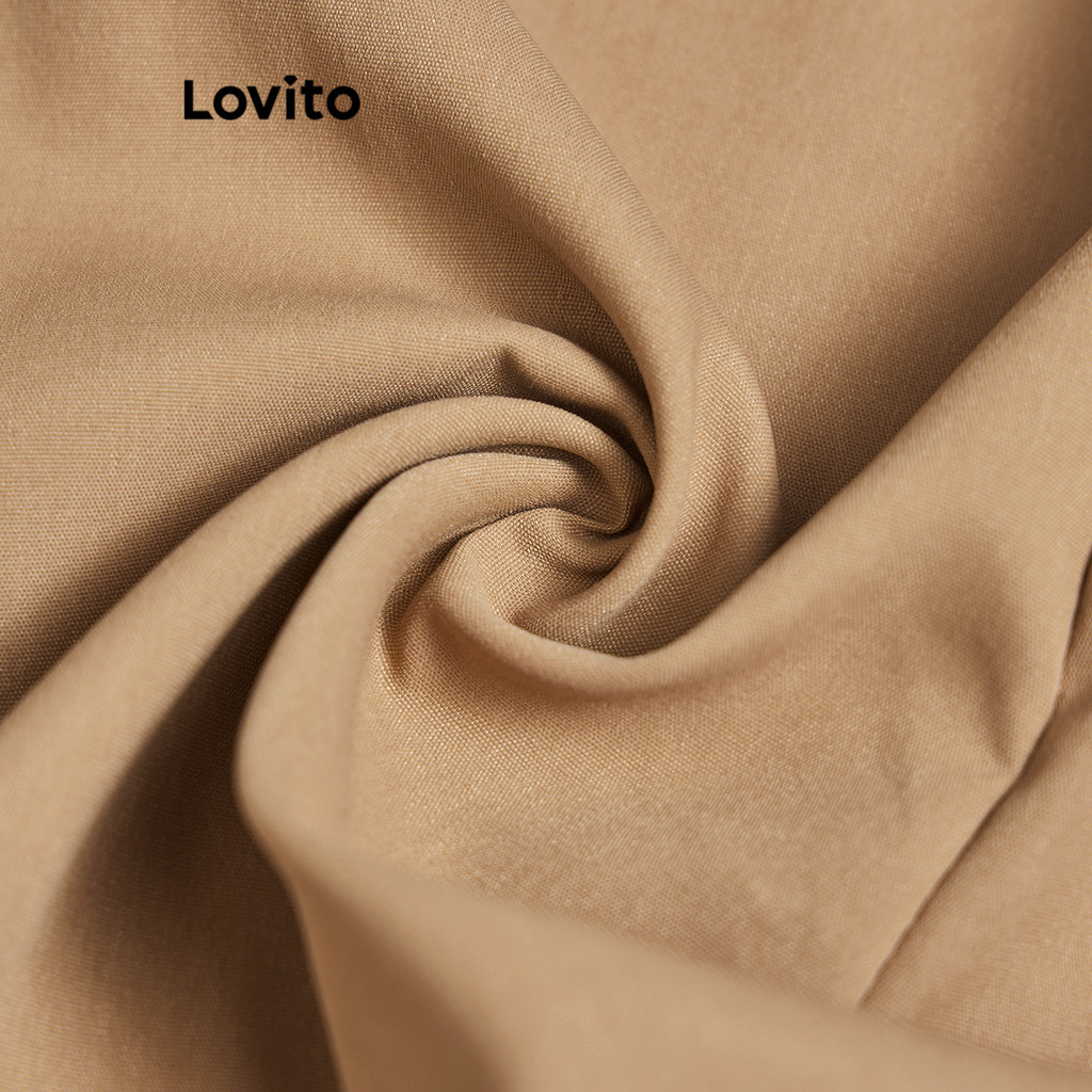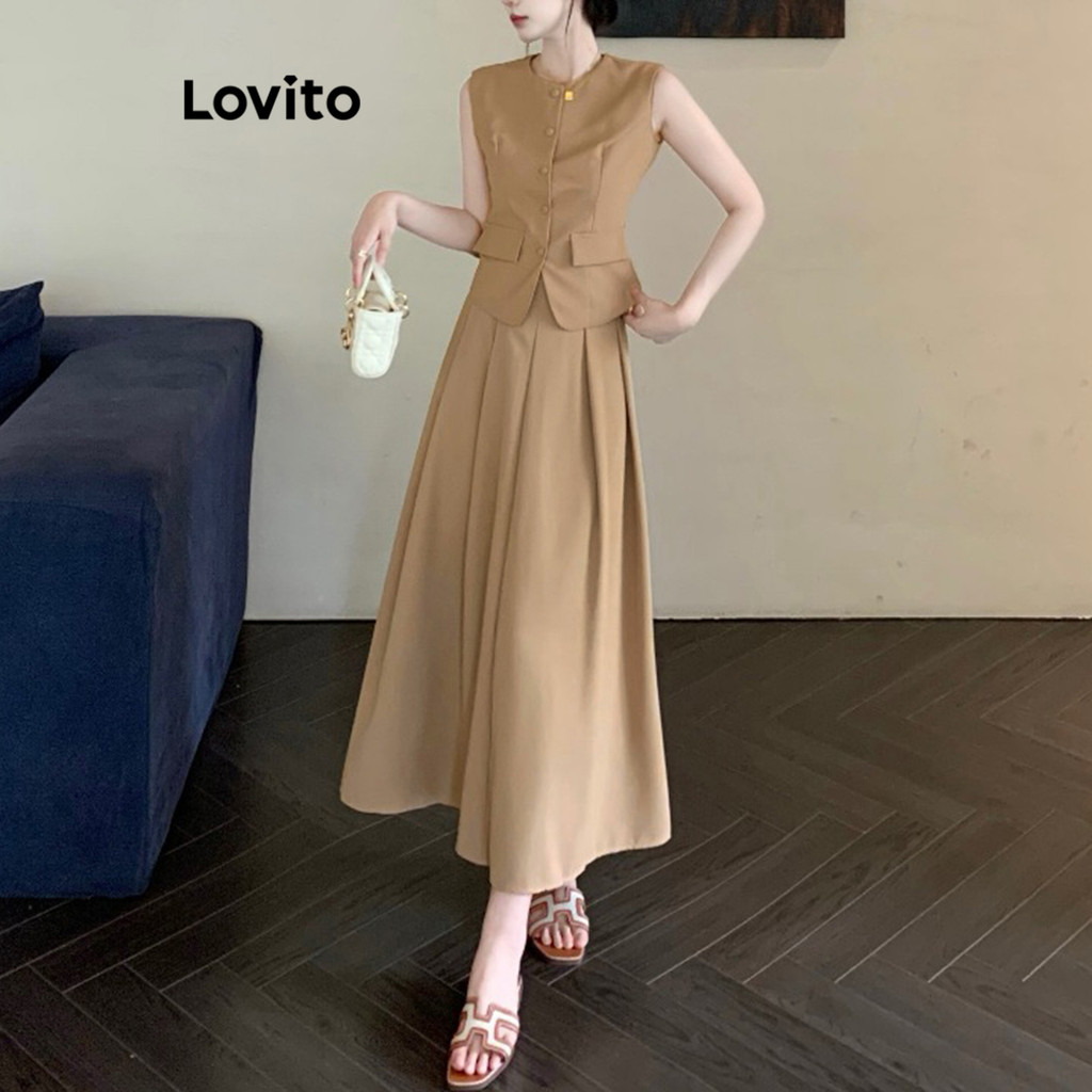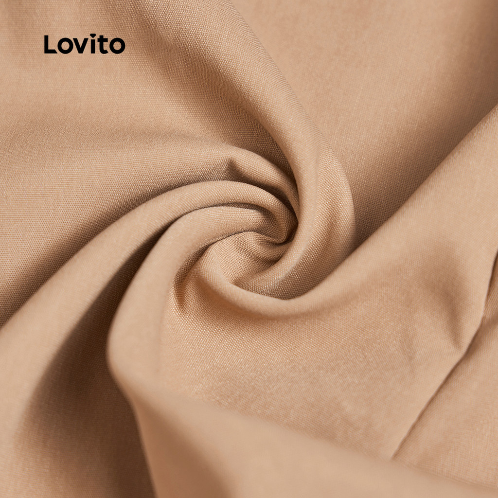 (LIVE STREAM SALE) Lovito Top ou inferior feminino Casual liso com botão plissado L74ED289