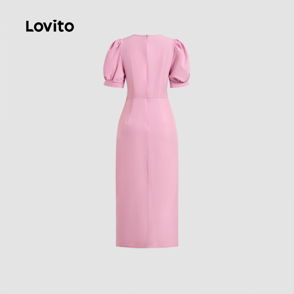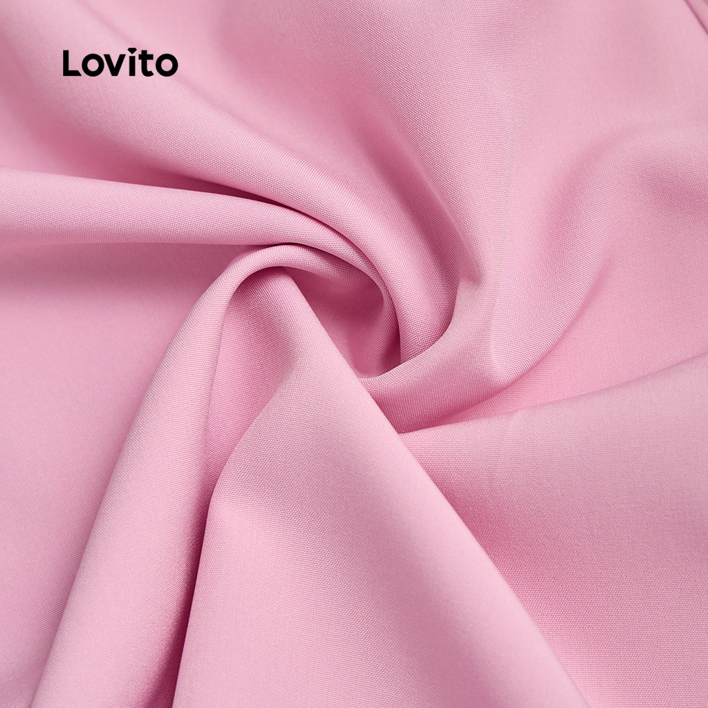 Lovito Elegante Liso Assimétrico Babado Bainha Verão Primavera Vestido Rosa Para Mulheres L135ED328