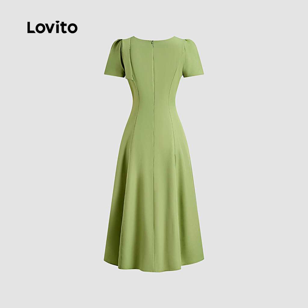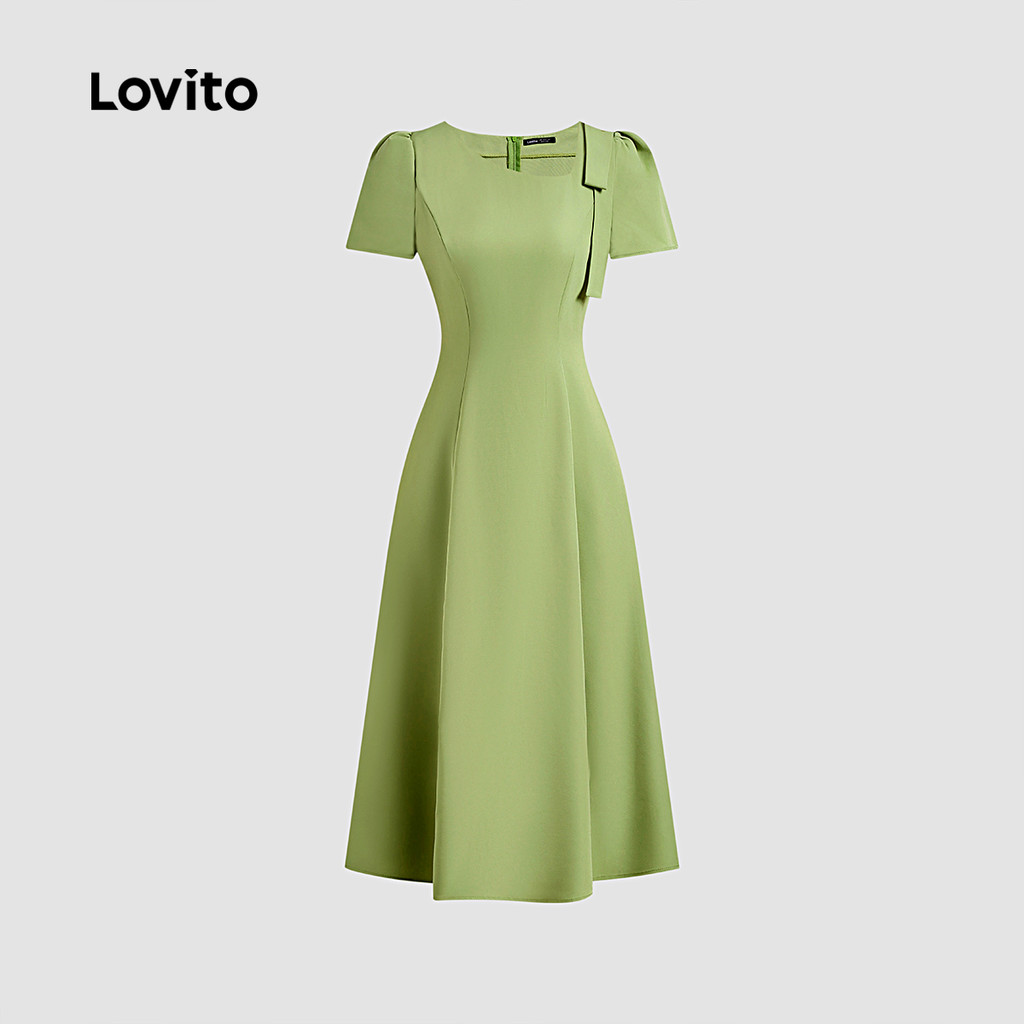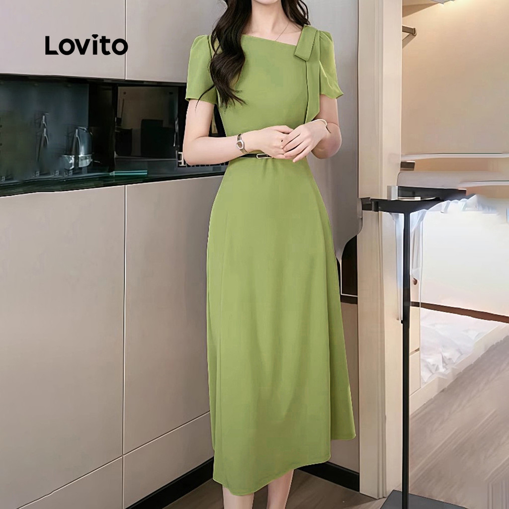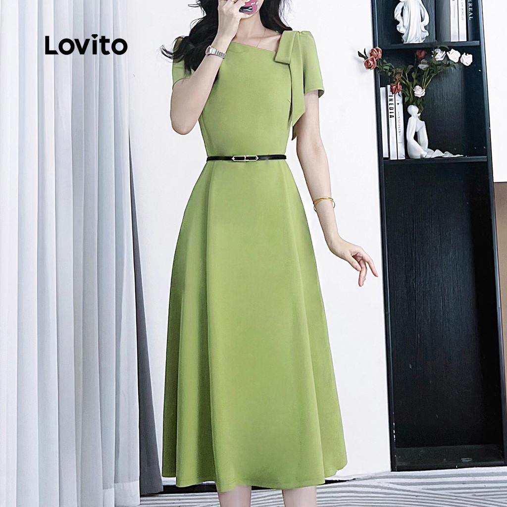 Lovito Vestido Elegante Assimétrico com Laço Vestido Verde de Primavera/verão para mulheres L142ED227