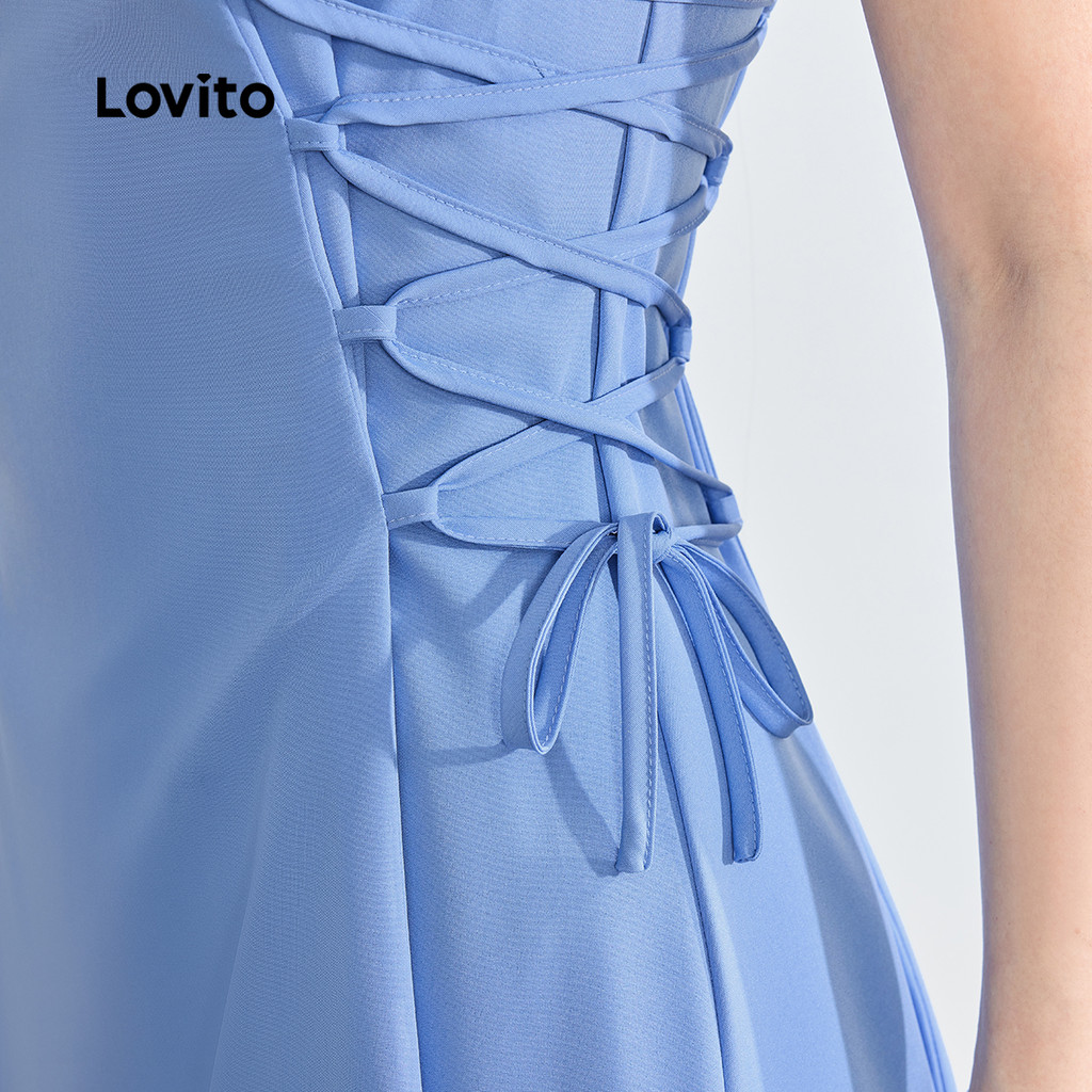 Lovito Vestido Feminino Azul com Renda Lisa para Primavera/Verão LBL25449
