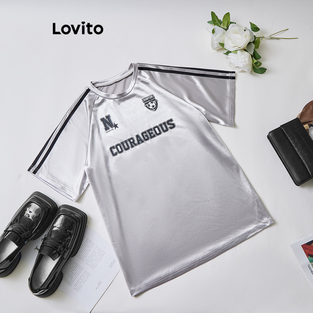 Lovito Blusa Casual Feminina com Estampa de Letras Contrastadas L101AD138