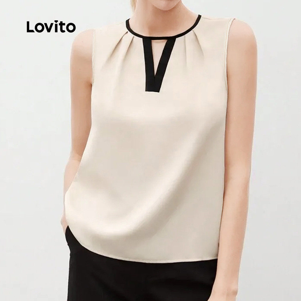 Lovito Blusa Elegante Colorblock com Pregas Primavera/verão Blusa de Damasco para Mulheres L155ED1642