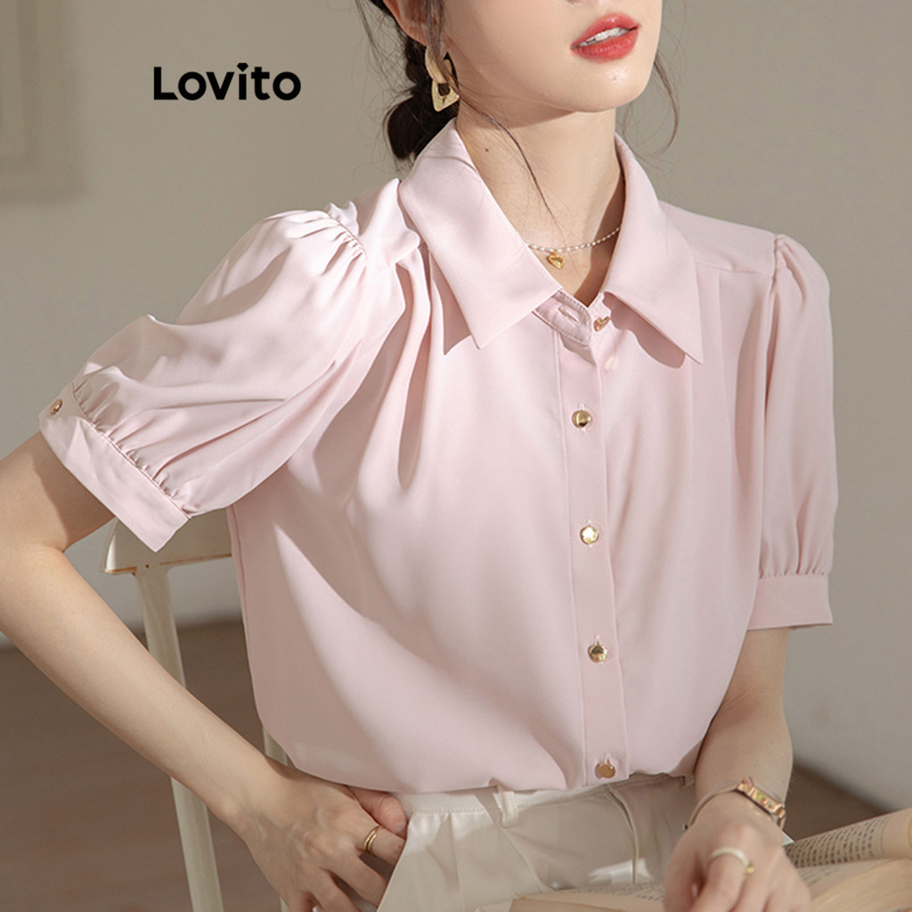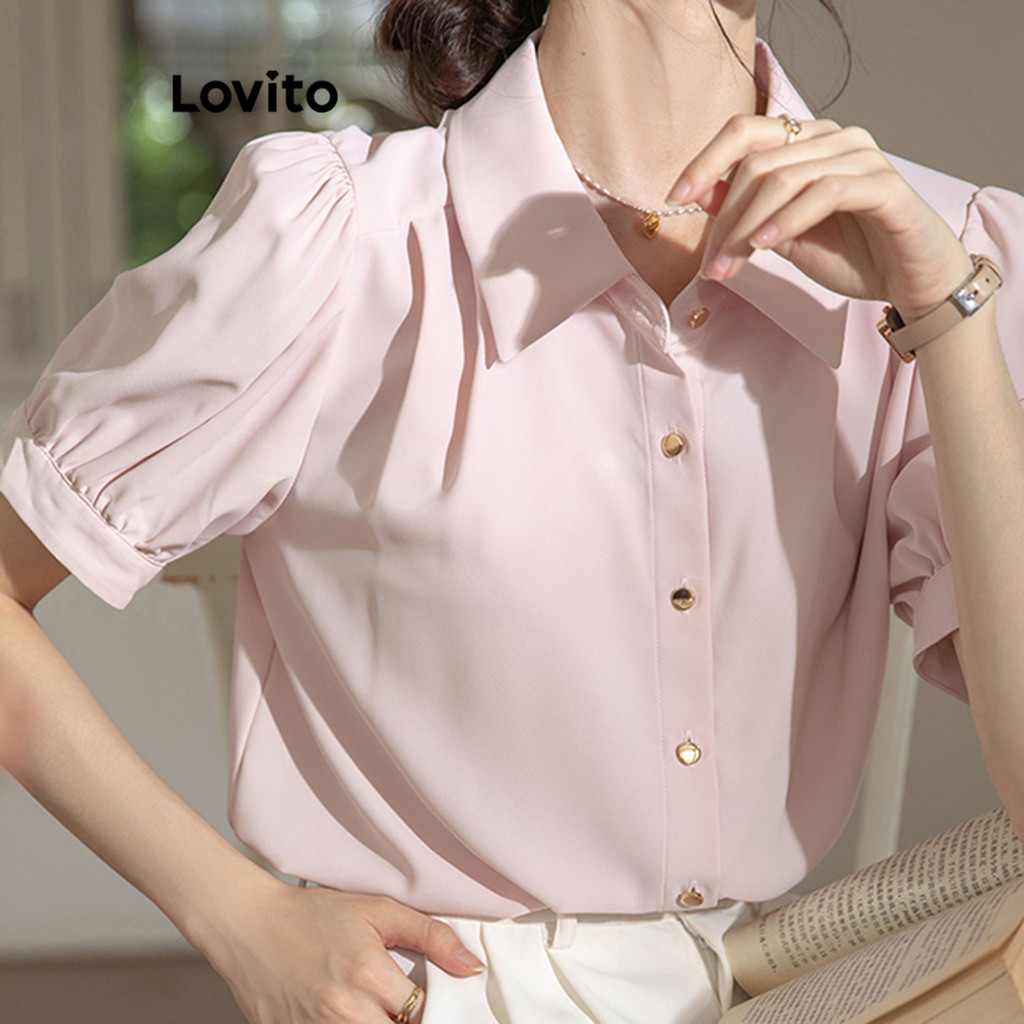Lovito Blusa Casual Blusa Lisa Franzida Para Mulheres LNA63406