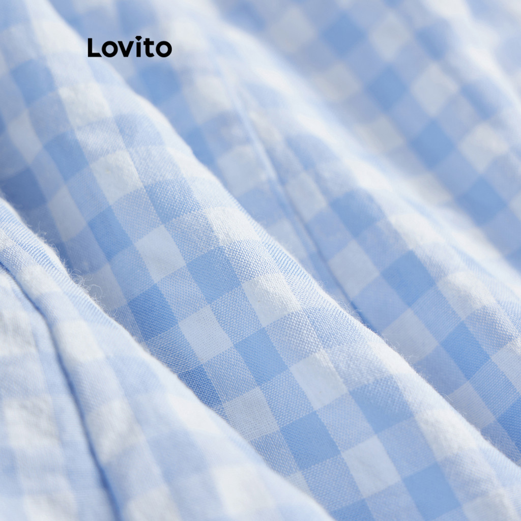 Lovito Macacão Casual Xadrez Jacquard Com Cadarço Para Mulheres L104ED568
