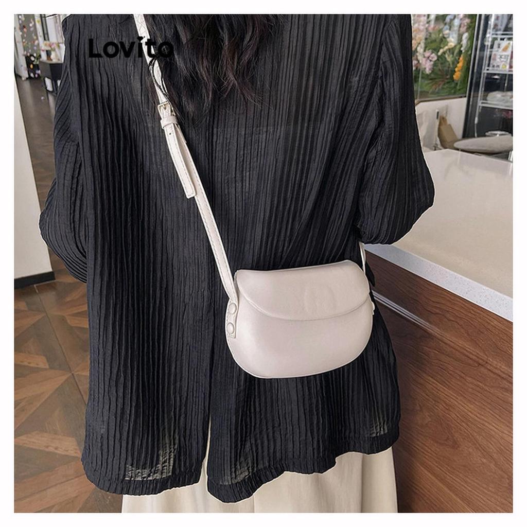 Lovito Casual Plain Commute Texture Simples Pequena Bolsa de Ombro para Mulheres LFA51546