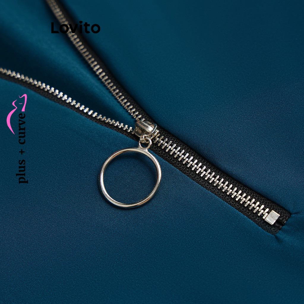 Lovito Blusa Elegante Curva Plus Size Com Zíper Blusa De Verão/Primavera Para Mulheres LBL20142