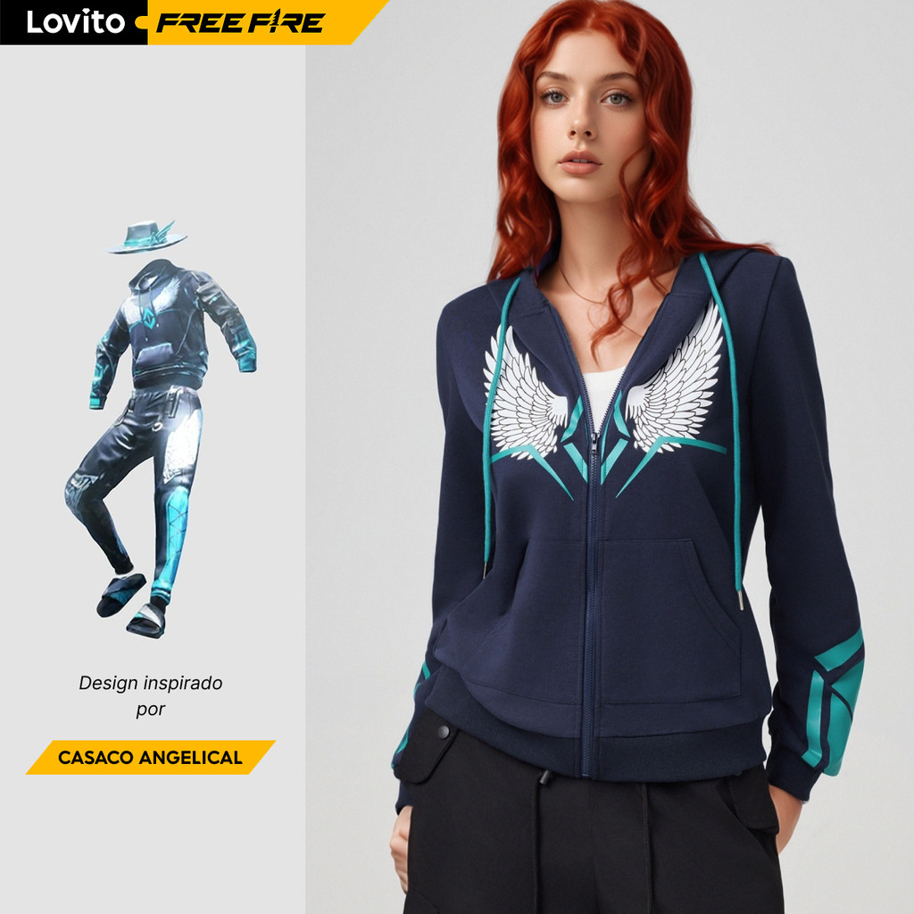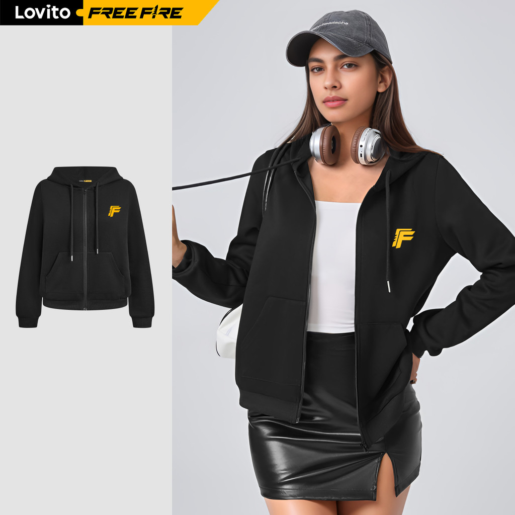 LOVITO X FREE FIRE Moletom Casual Com Zíper E Estampa De Letras Feminino LFFB1FF002