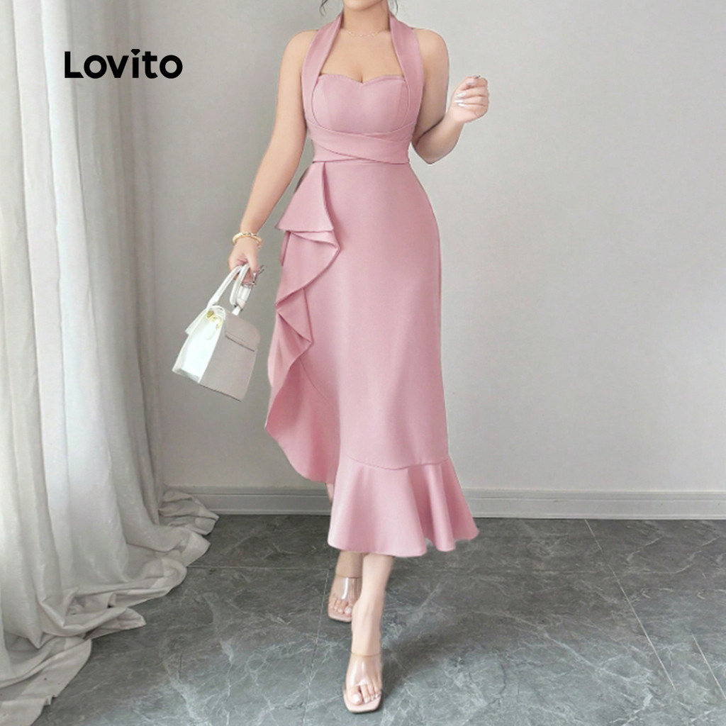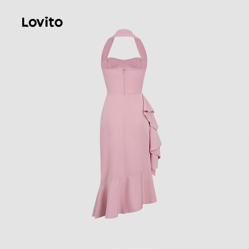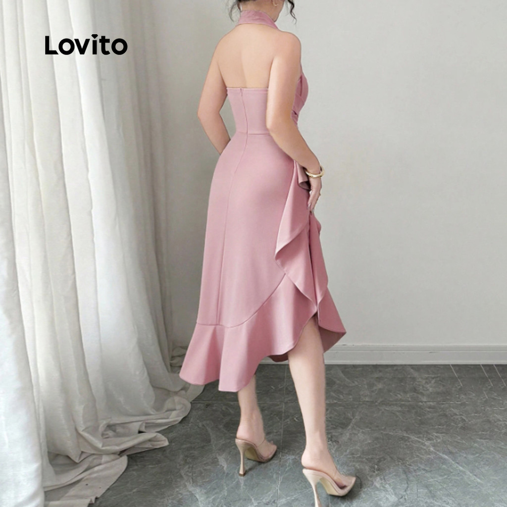 B155-OCT25-B-1-Asimétrica Folha de Lótus Costura Halter Neck Halter Vestido Elegante-NEW-DRB155PAD253