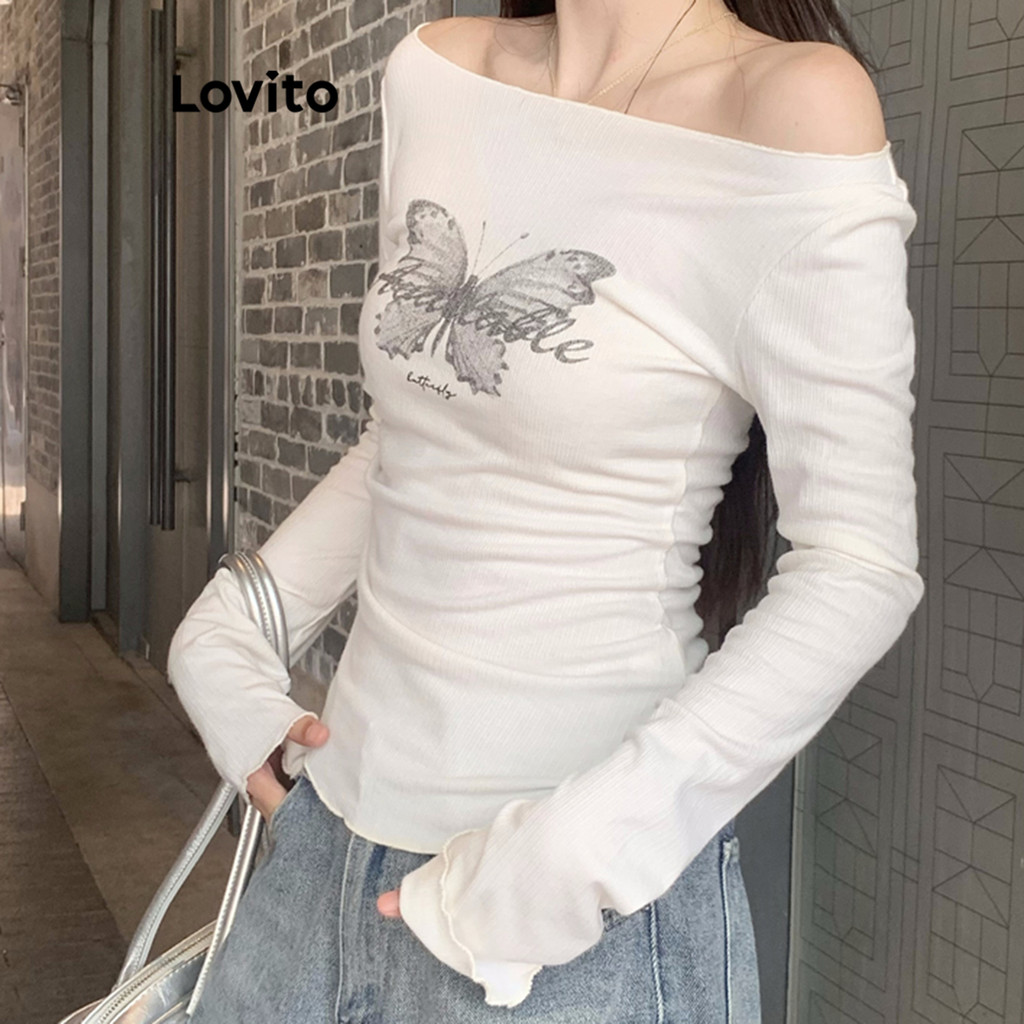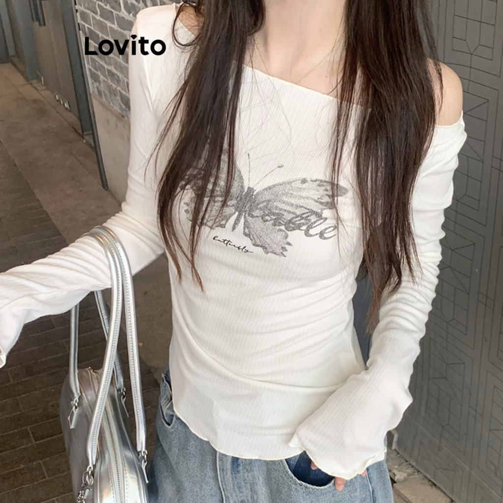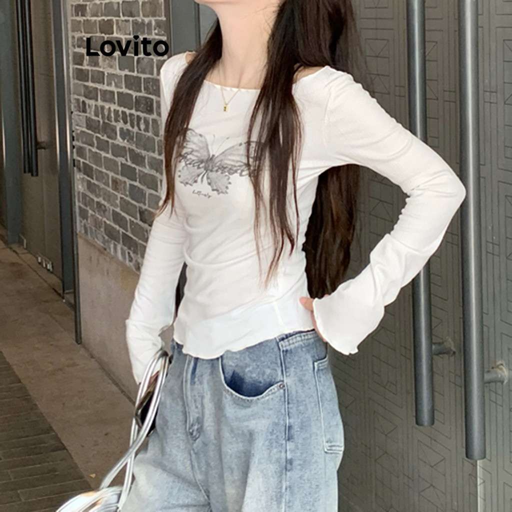 Lovito Camiseta Casual Com Estampa Lisa Para Mulheres LNA74238