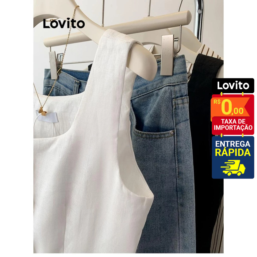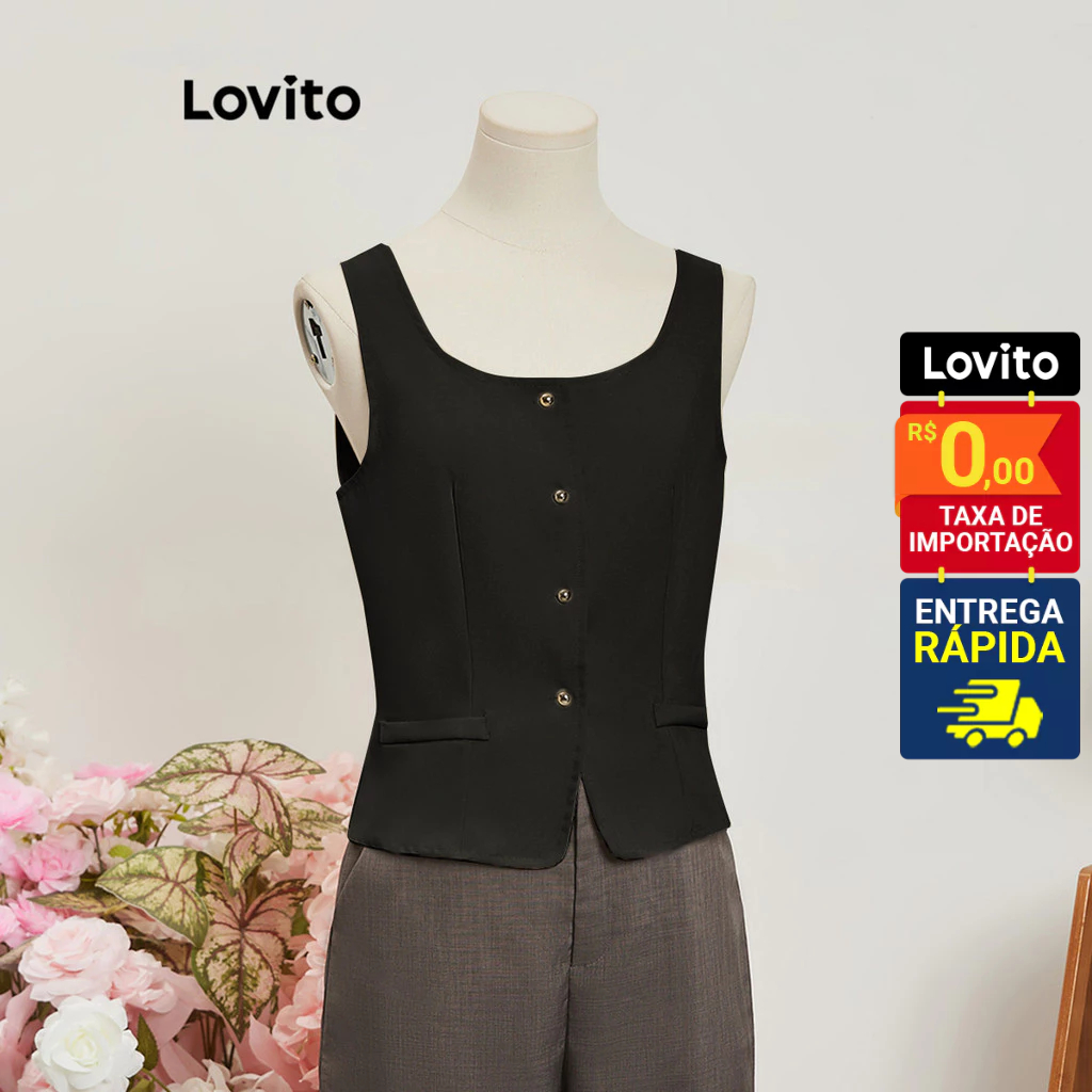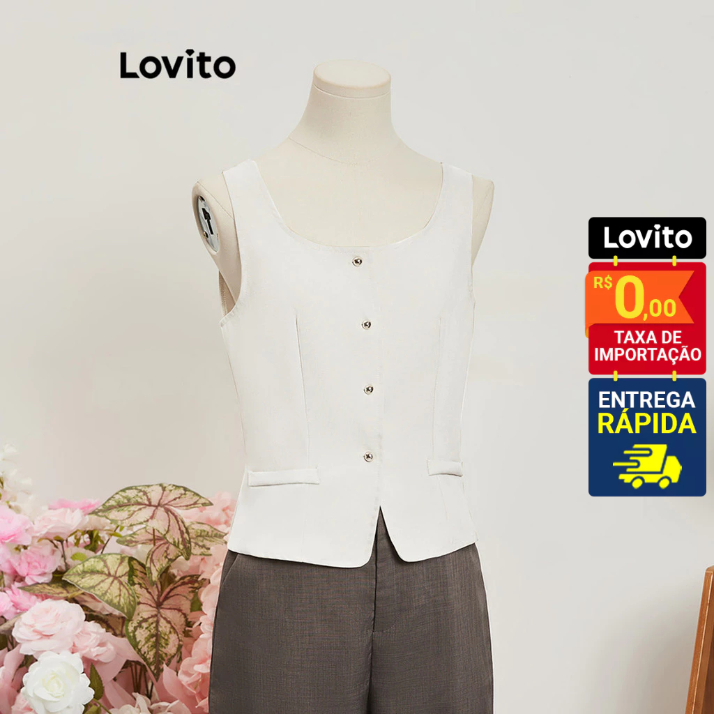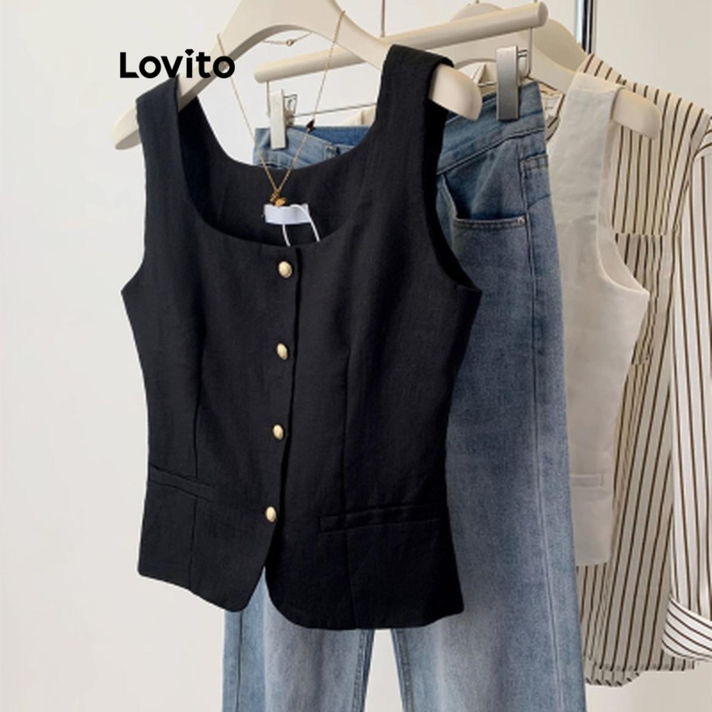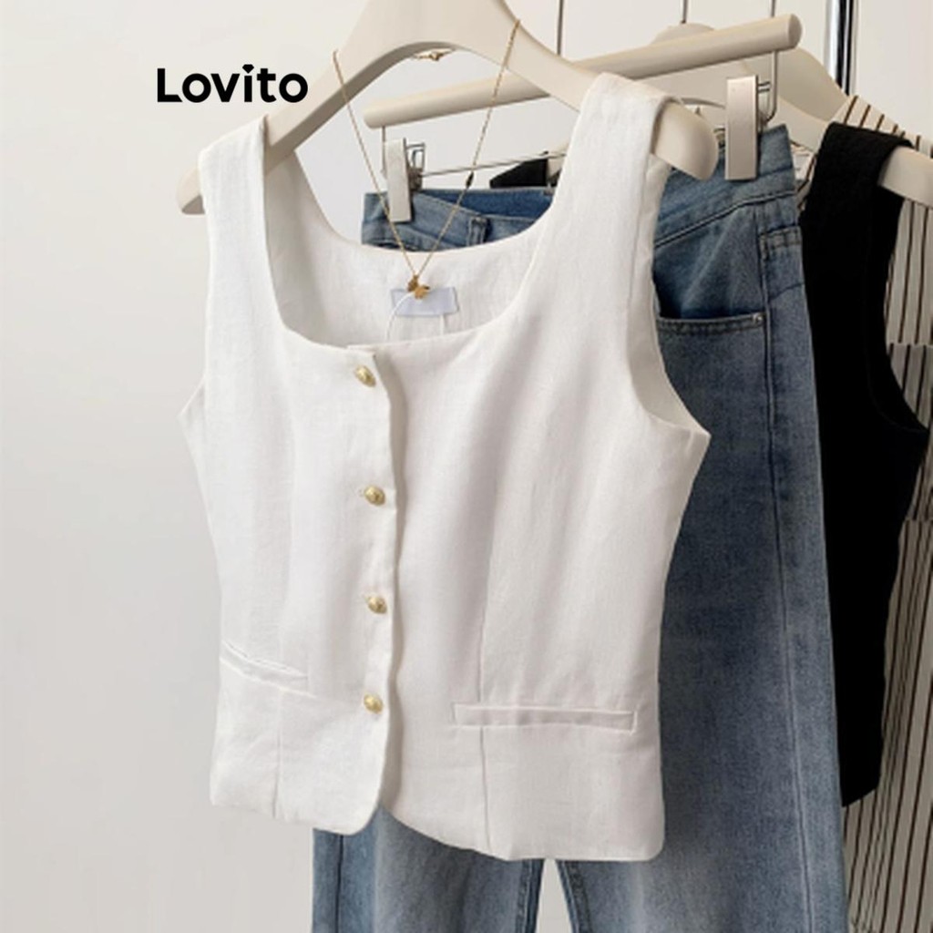 Lovito Regata Feminina lisa com botão frontal LNE52350