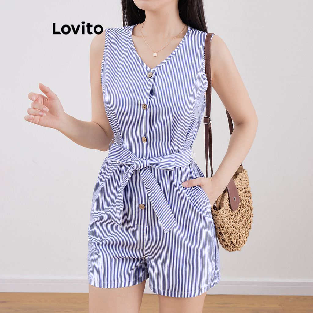 Lovito Macacão Casual Listrado De Verão/Primavera Com Cinto Para Mulheres L121MD206