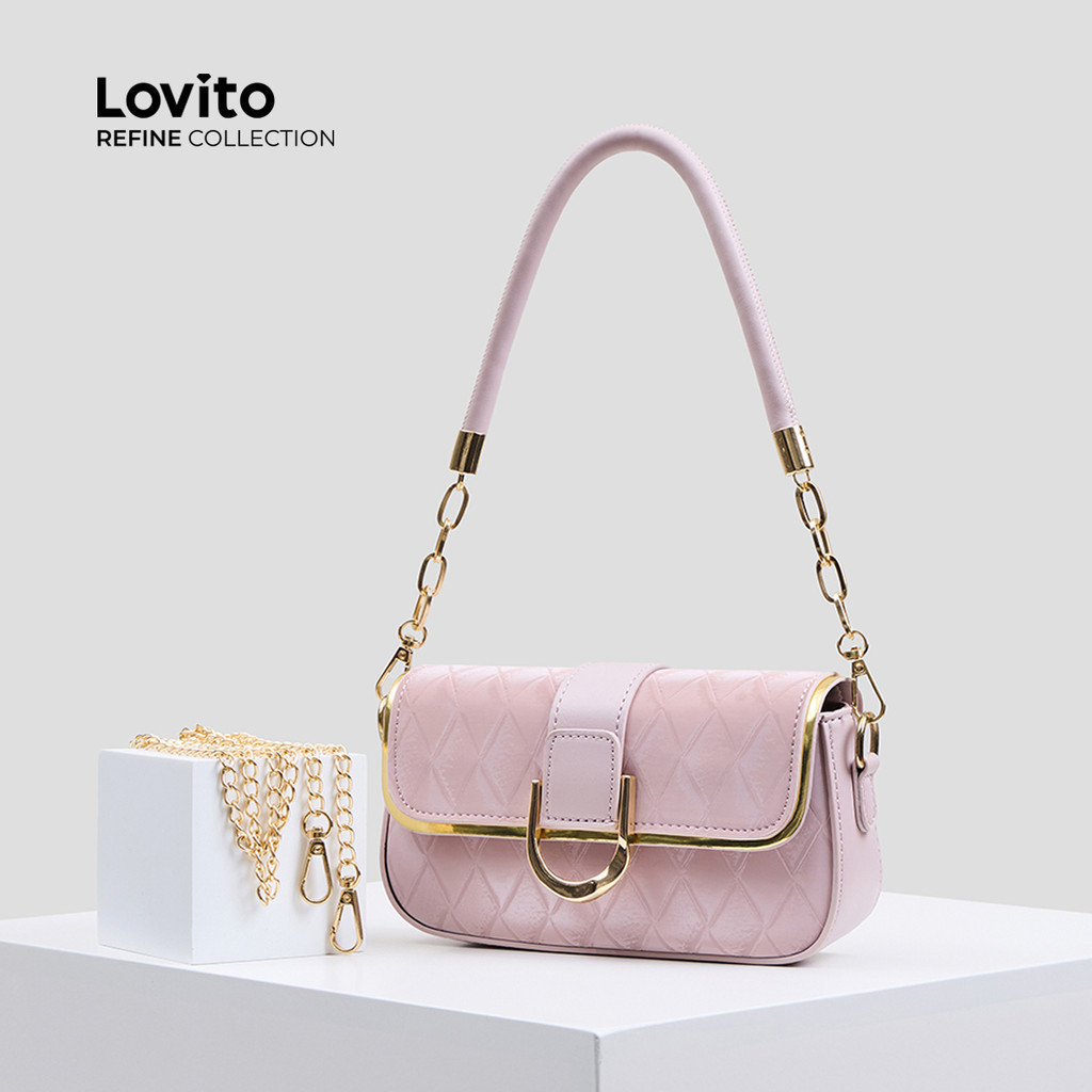 (Lovito Refine) Elegante couro cor axilas S corrente Metal pequena bolsa de ombro para mulher LFAR6076