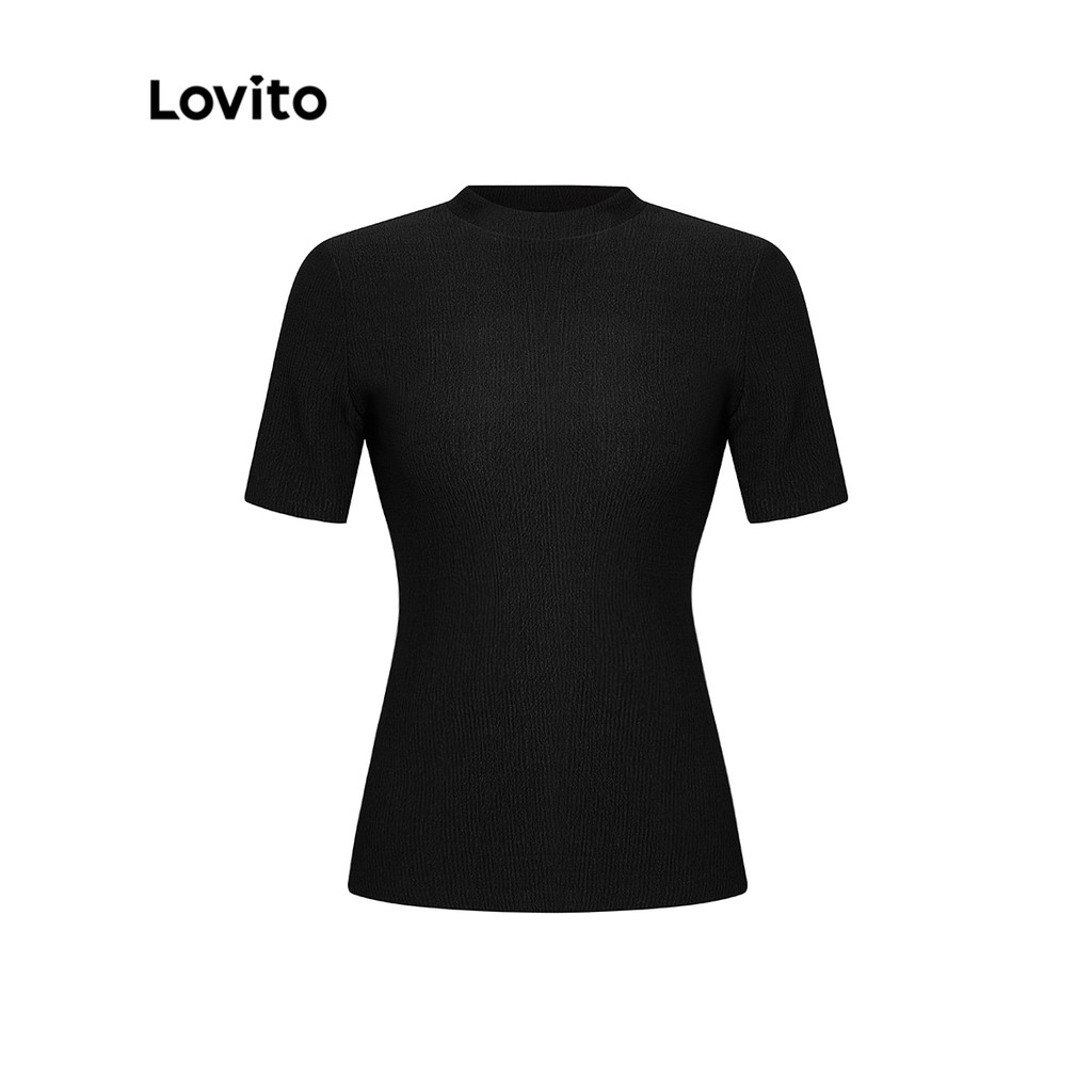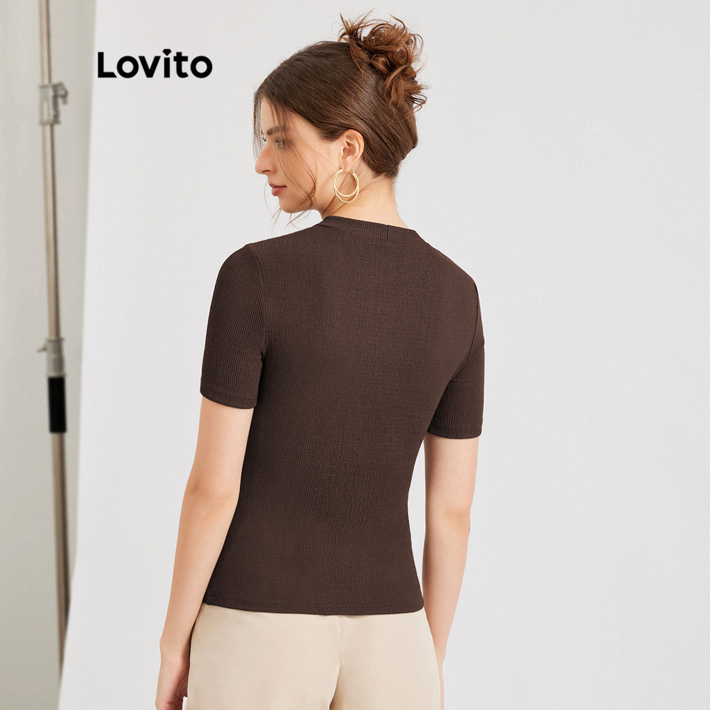 (Trendy) (Muitas cores)Lovito Camiseta Casual Lisa Com Colarinho Reto L30ED021 (Marrom)