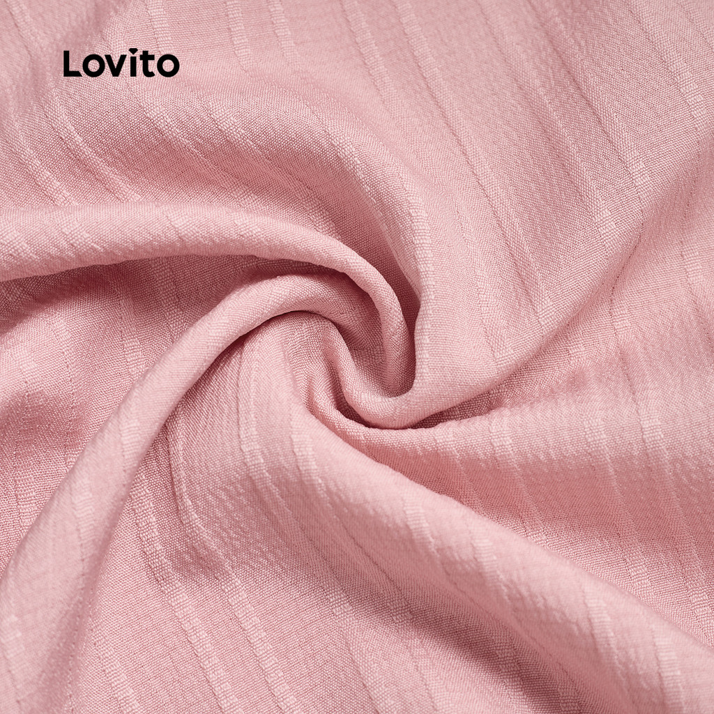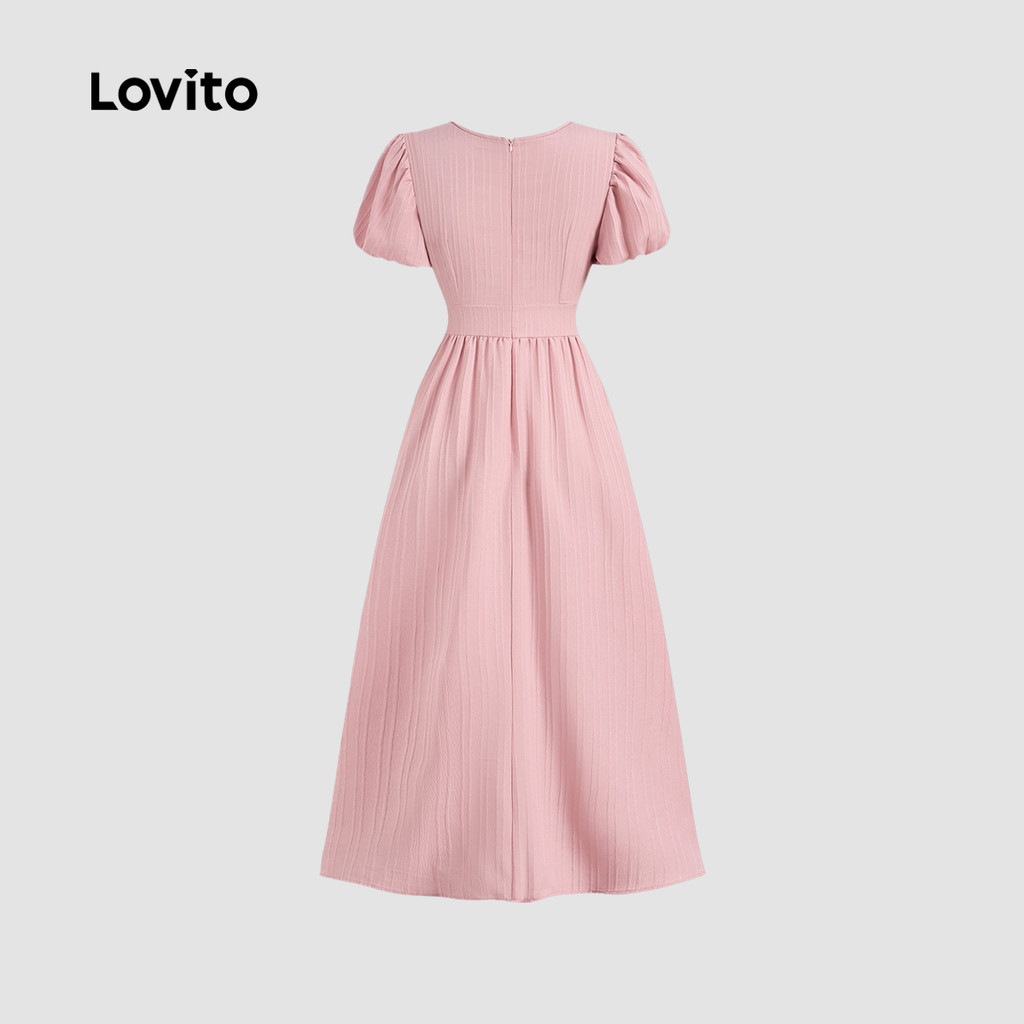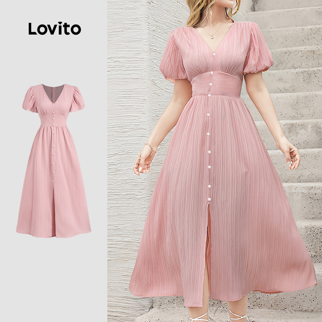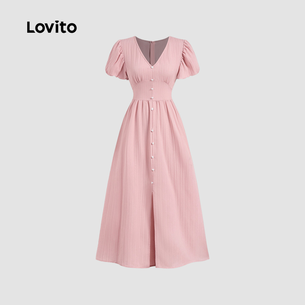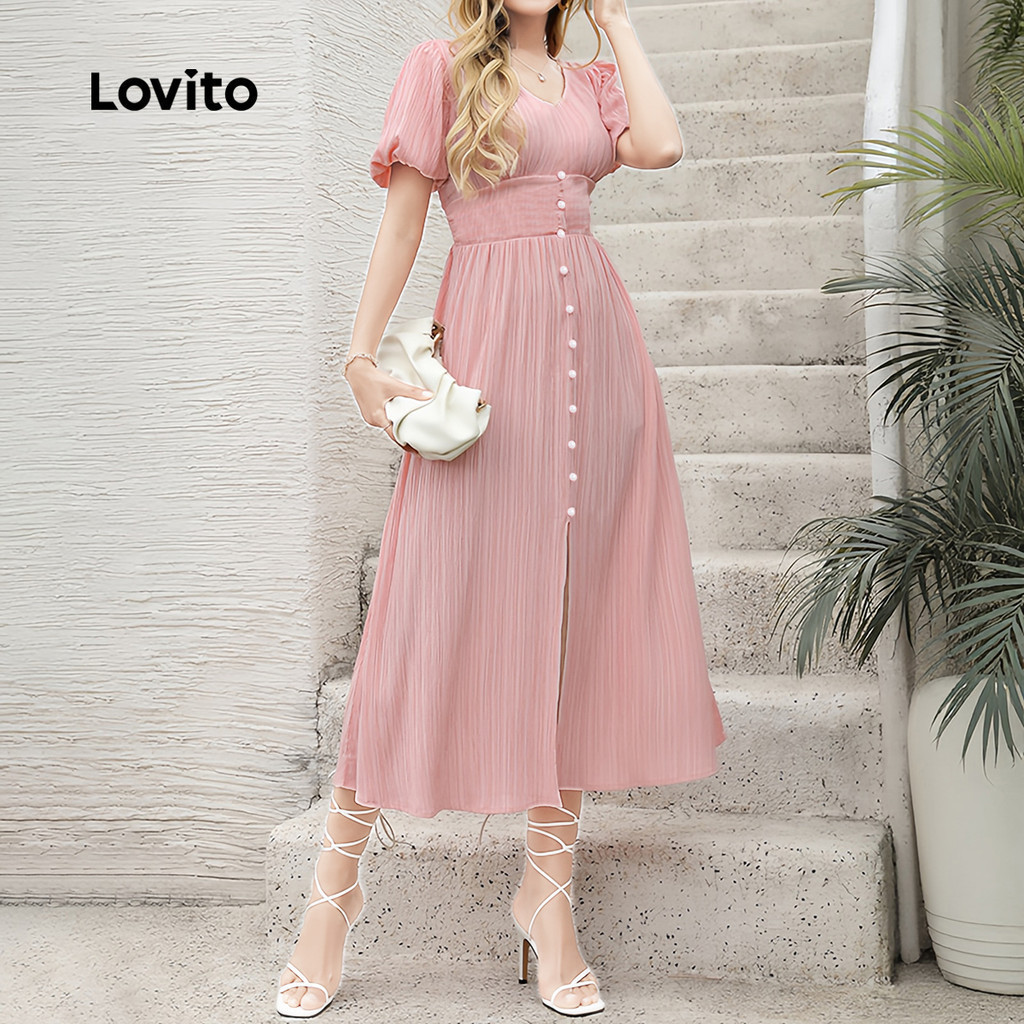 Lovito Vestido Casual Rosa Com Botões Frontais E Zíper Franzido Para Férias Na Primavera/verão Para Mulheres LBL27184