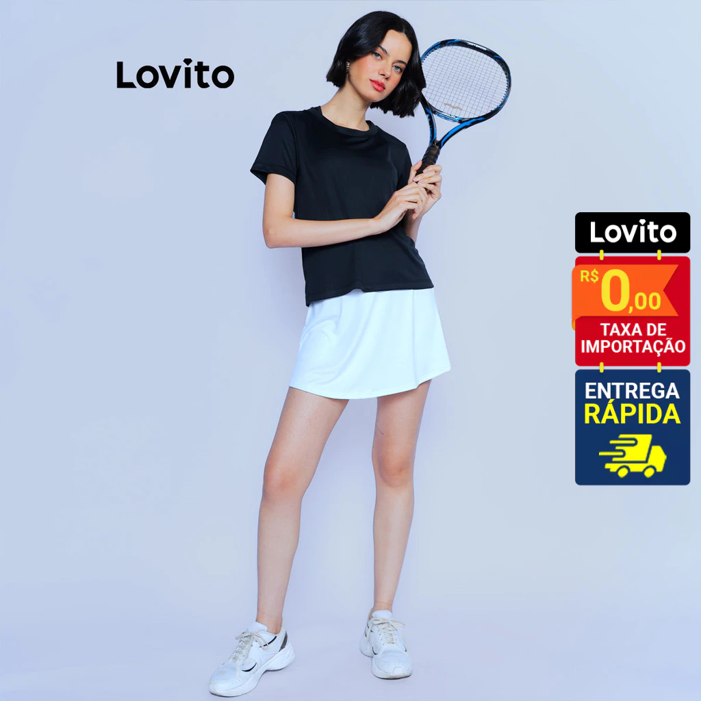 Lovito Shorts Saia Esportivo Feminino Branco Lisos LB533BRL563