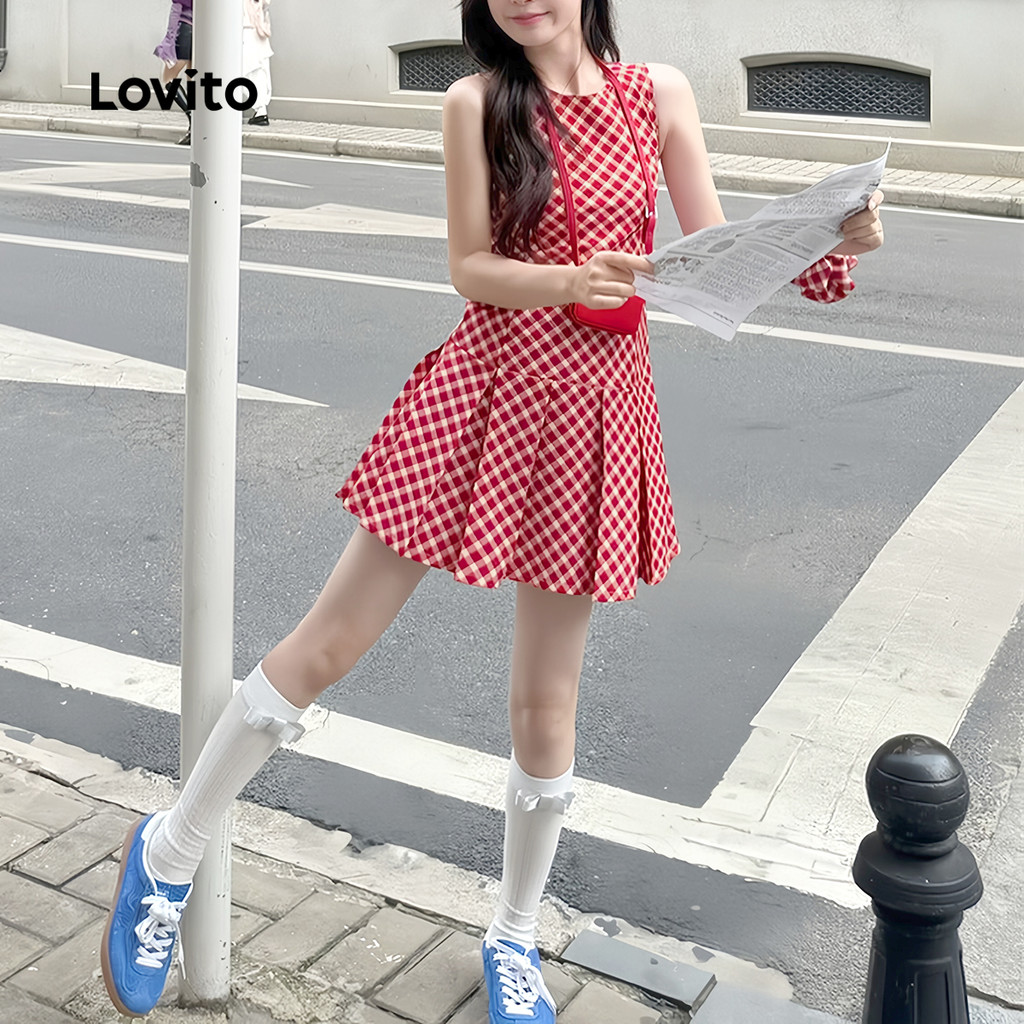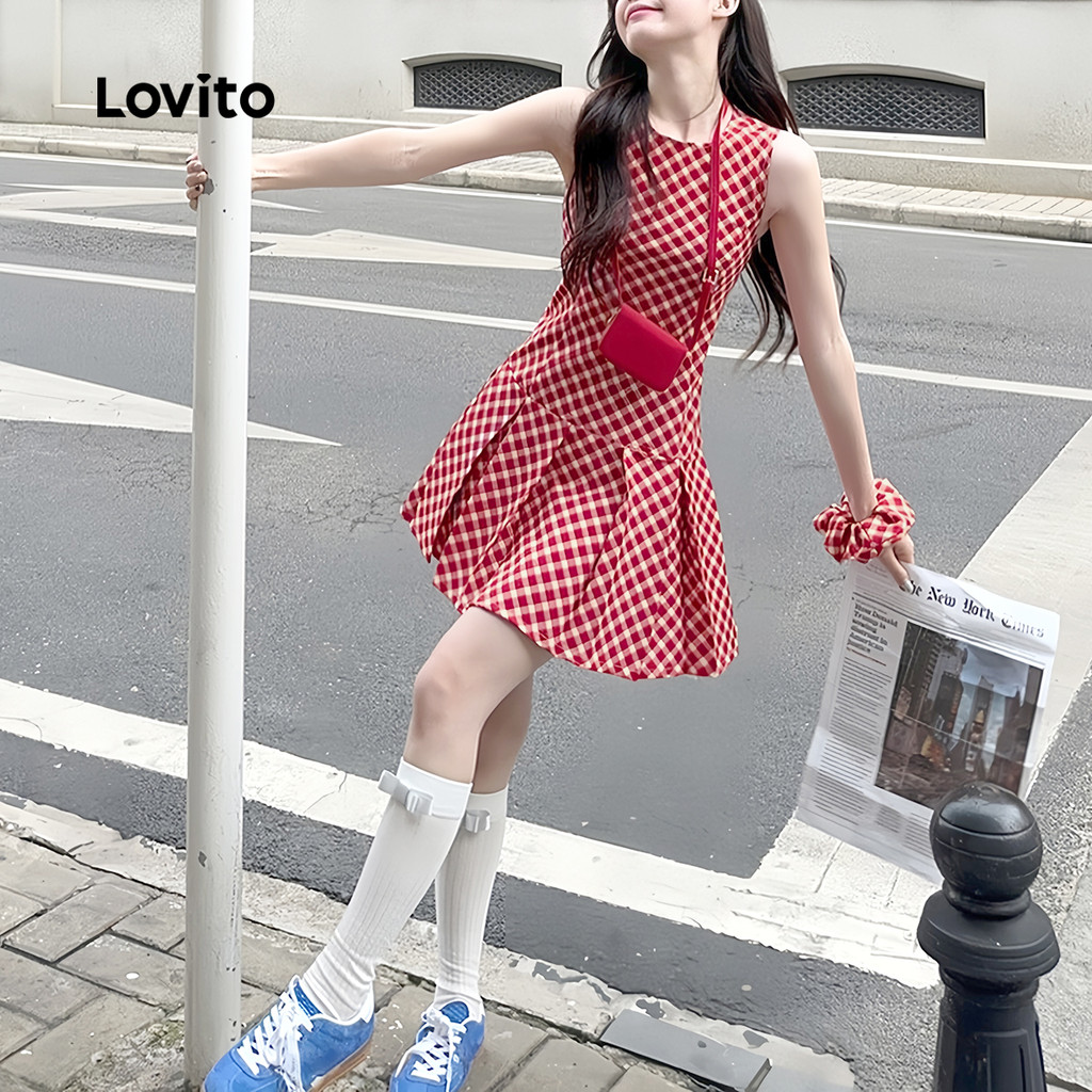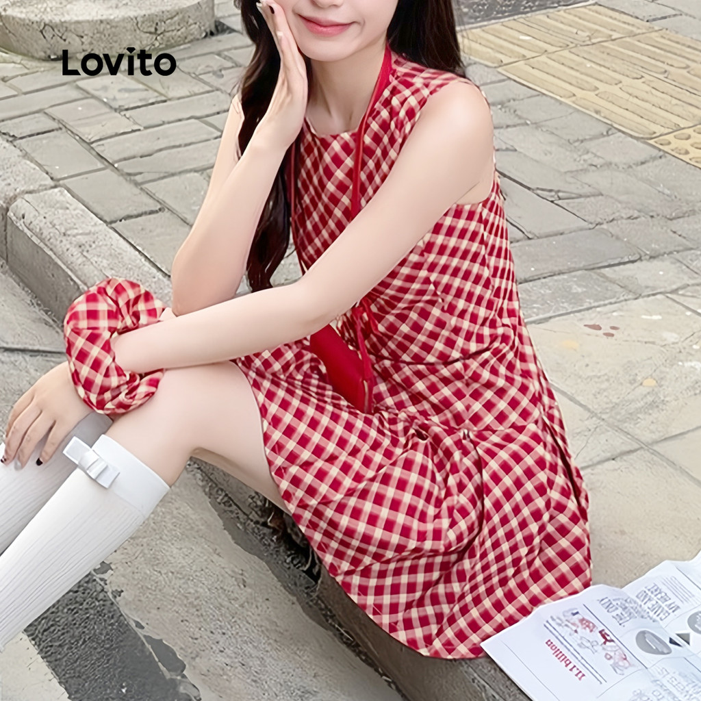 (New) Lovito Vestido Casual Pregueado de Primavera/verão para Mulheres em Vermelho L144AD038