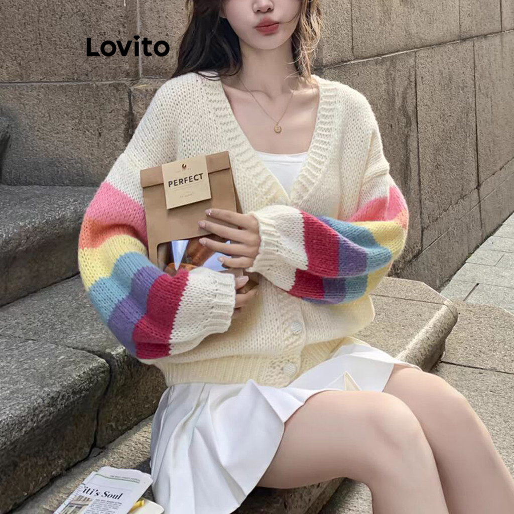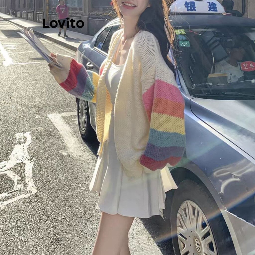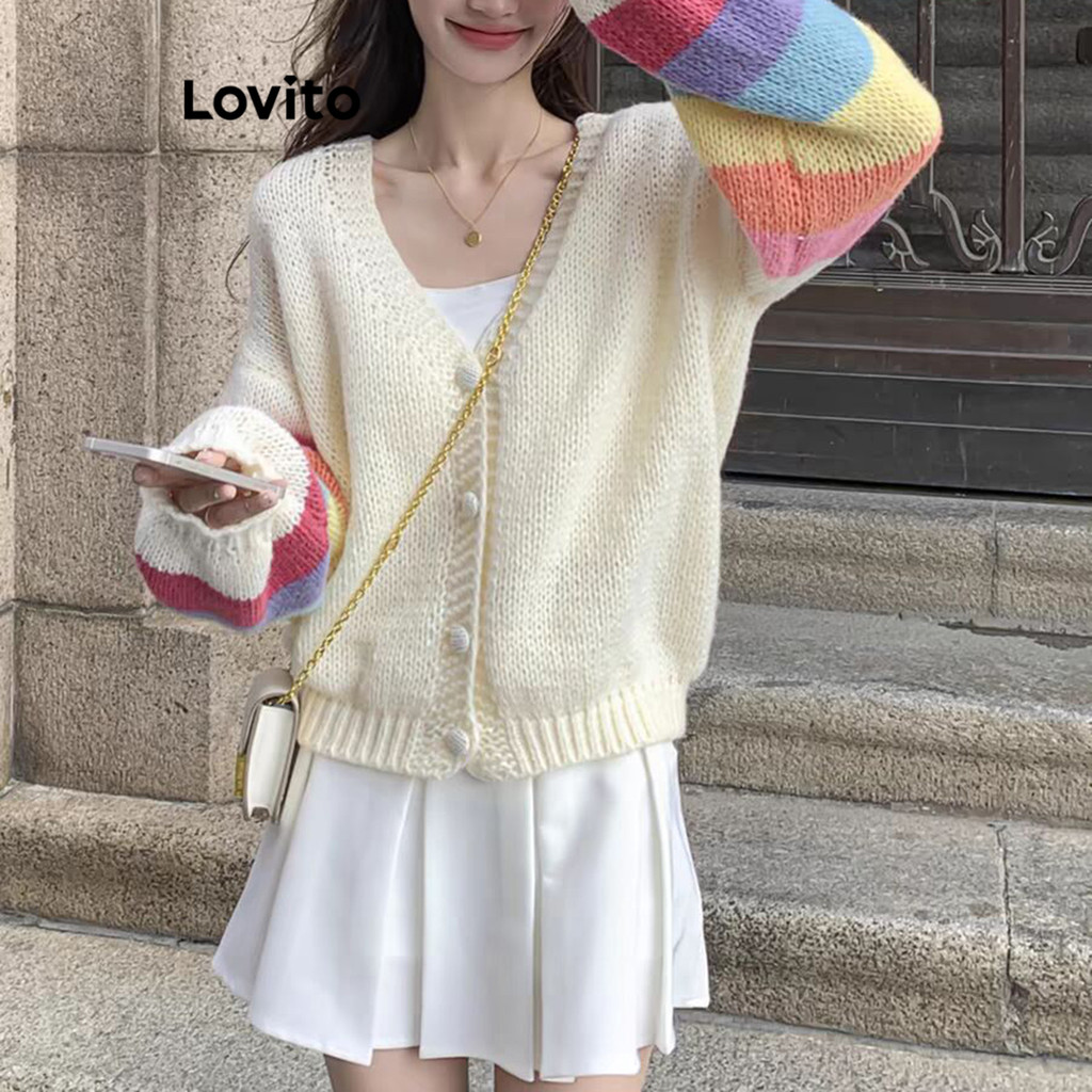 Lovito Cardigãs Casuais Colorblock Verão/Primavera Para Mulheres LNE69108