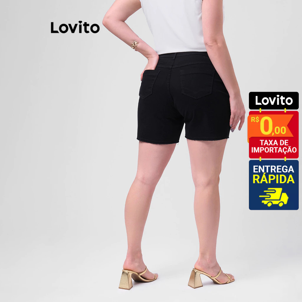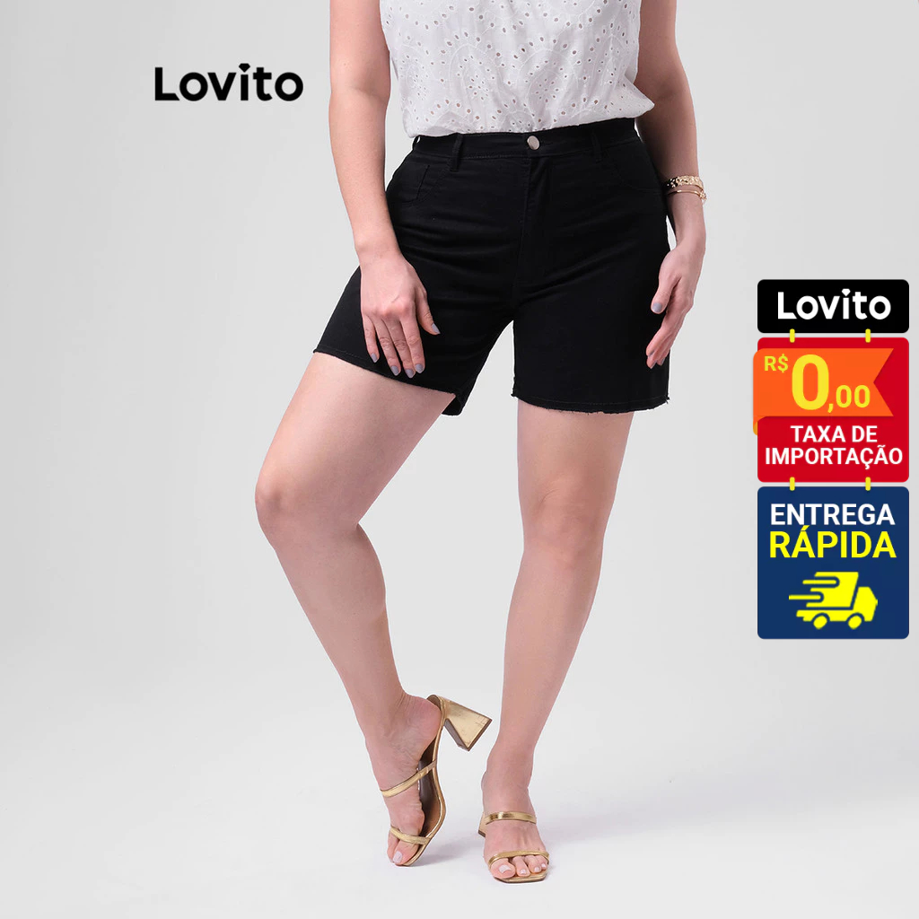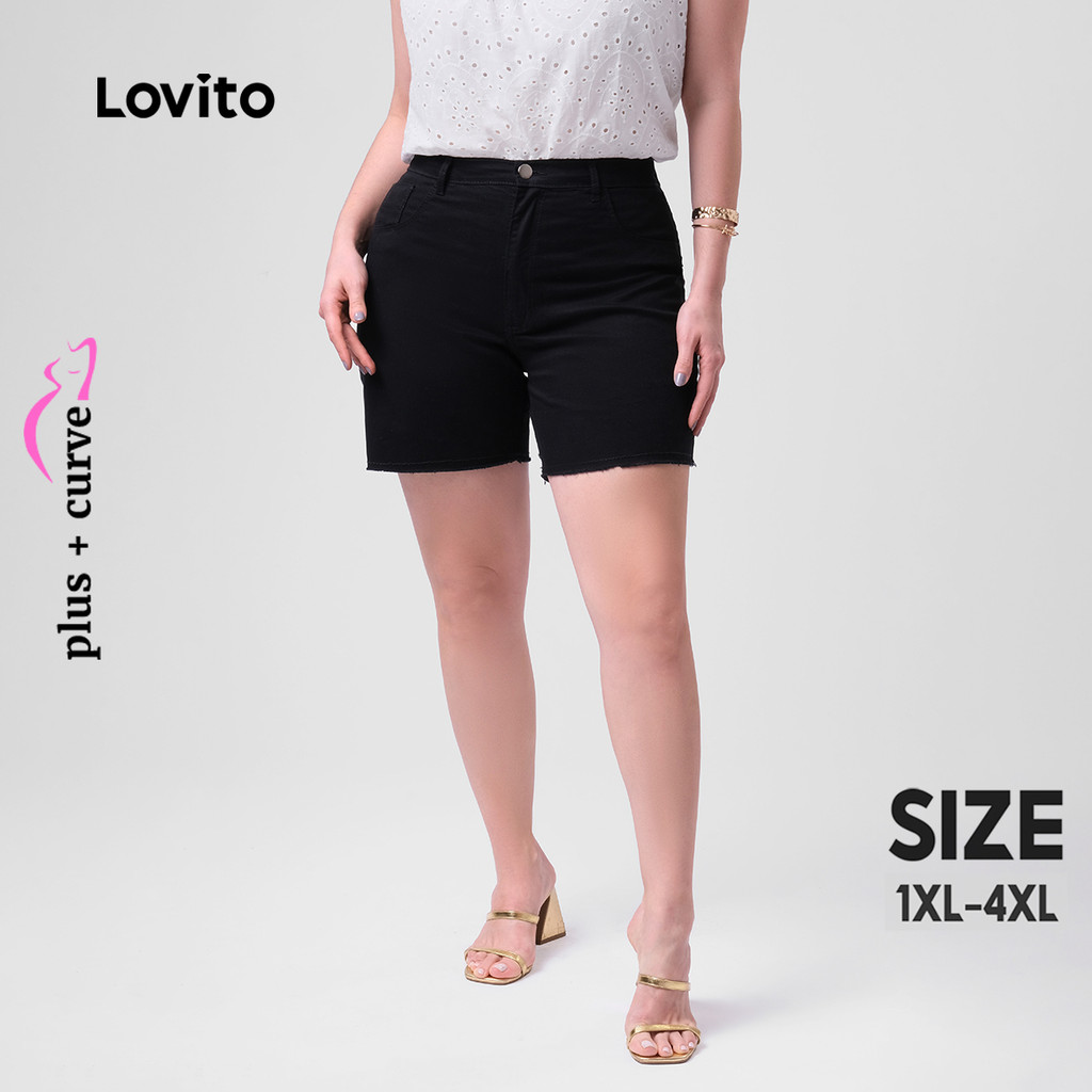 Lovito Shorts Jeans Feminino Barra a Fio Básico Plus Size LB186BRL215