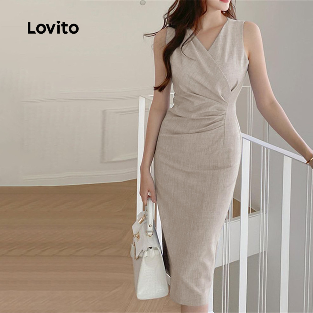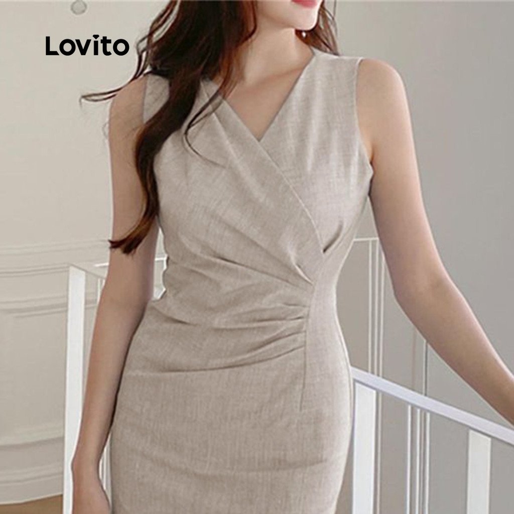 Lovito Vestido elegante plissado simples para mulheres L123ED629