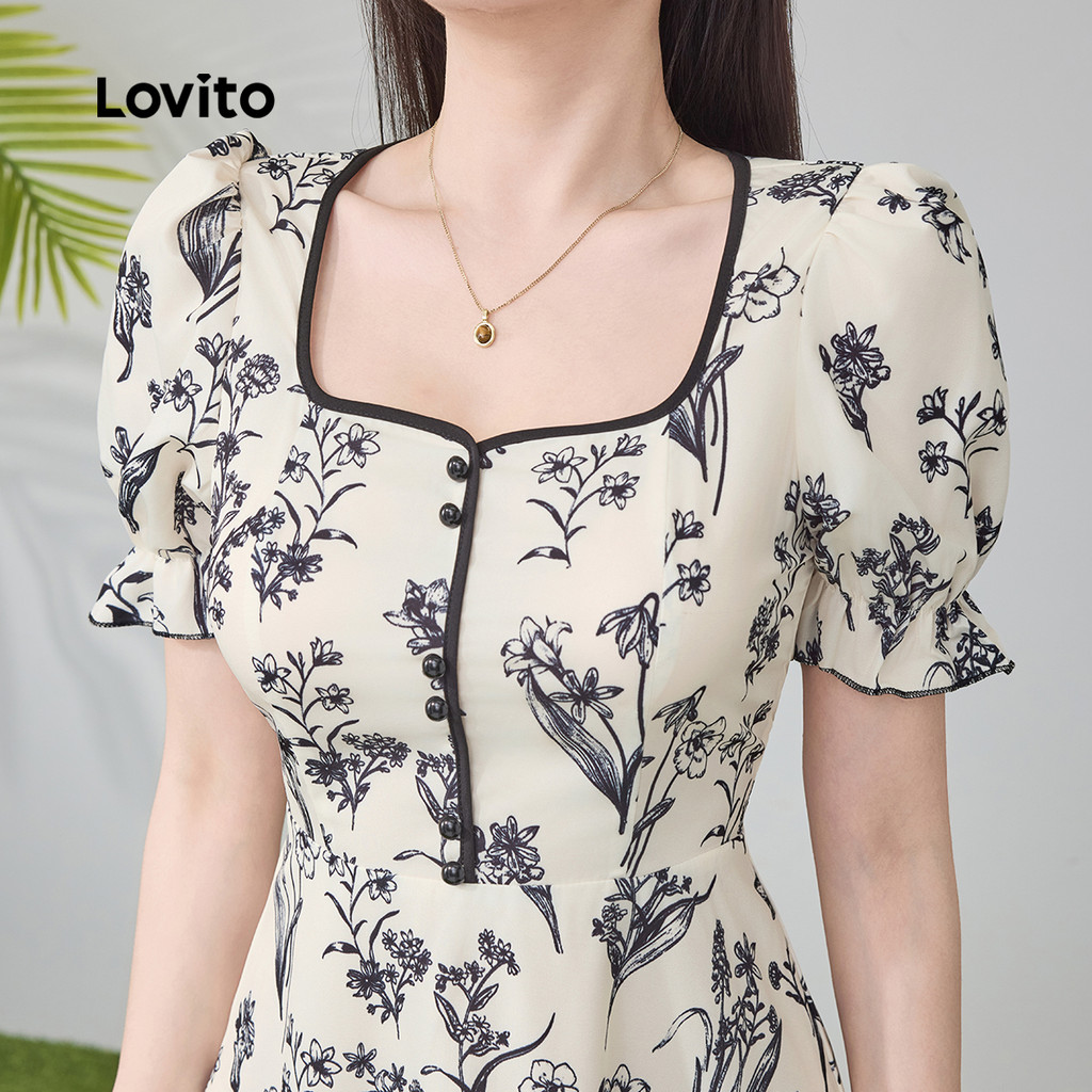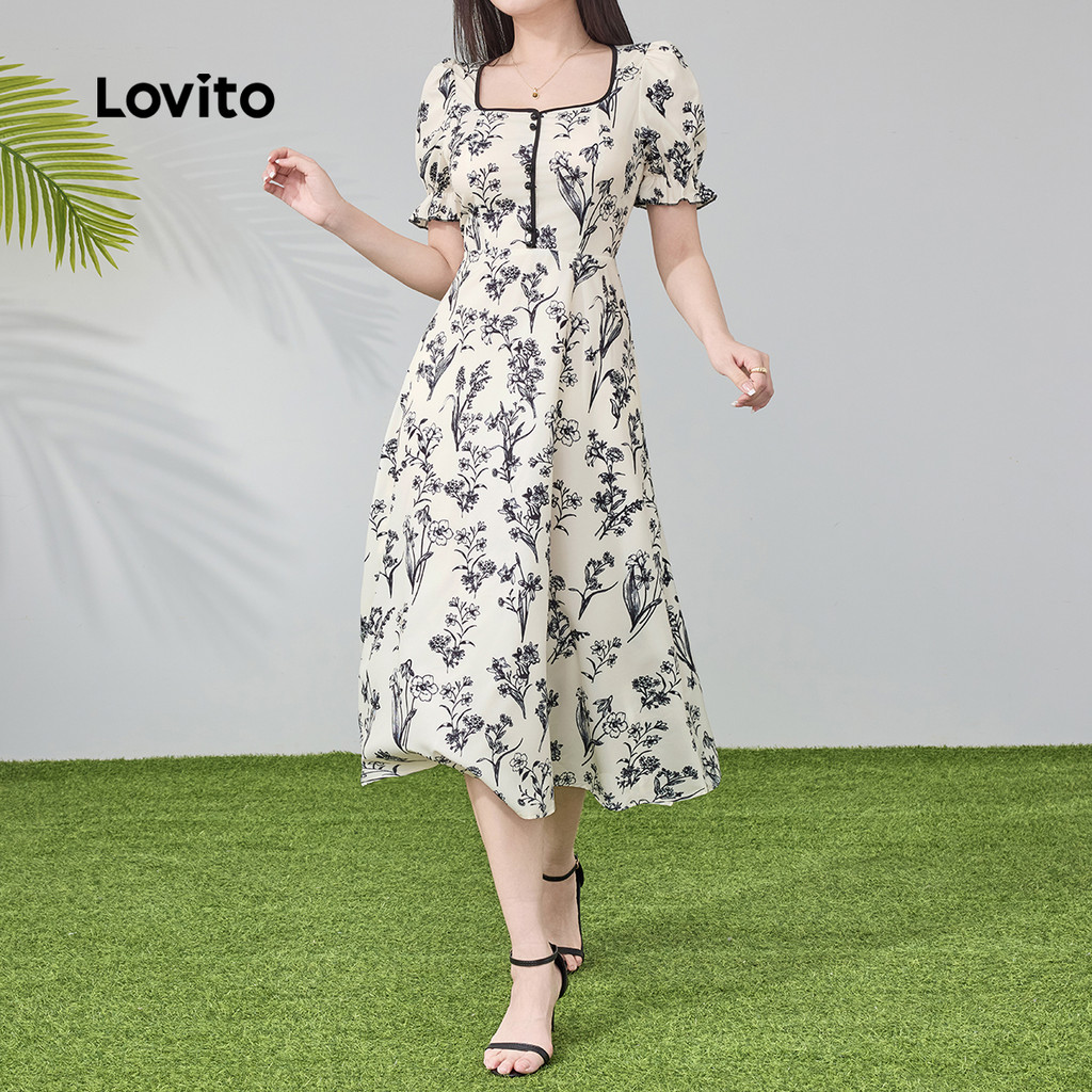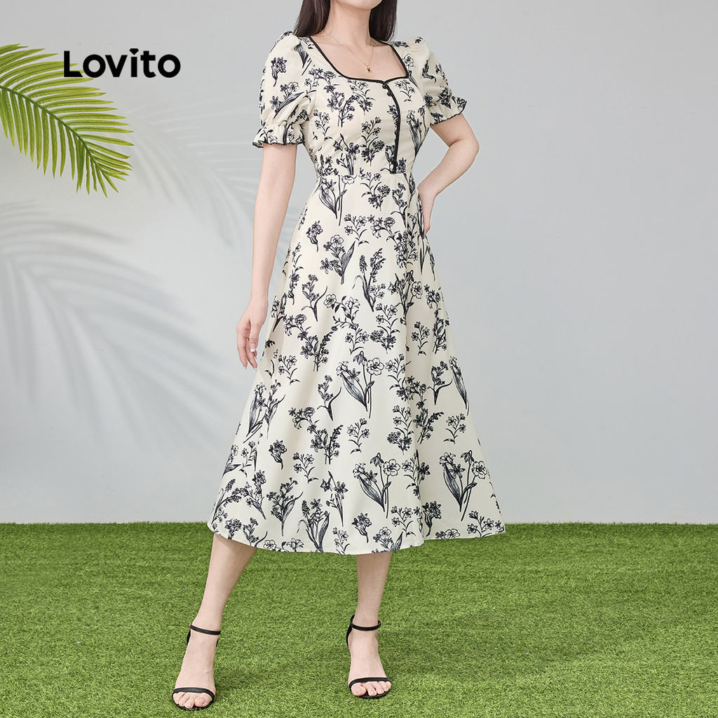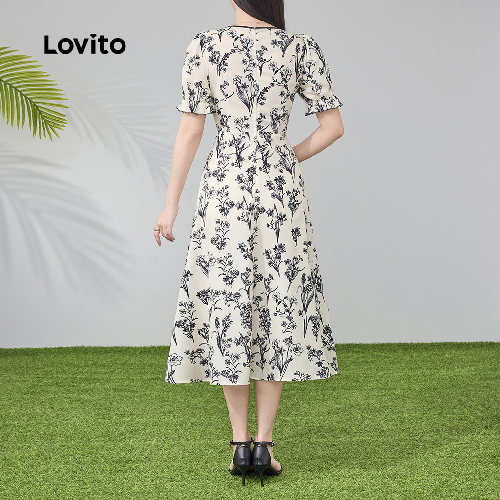 Lovito Elegante Estrutura Primavera/Verão Vestido Multicolorido Para Mulheres L134LD095