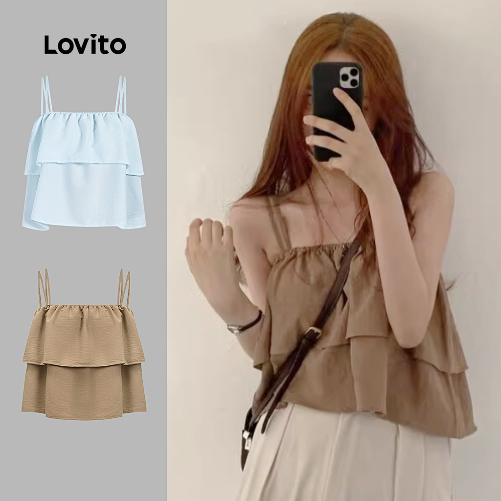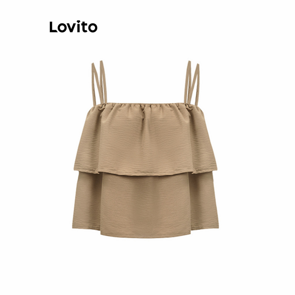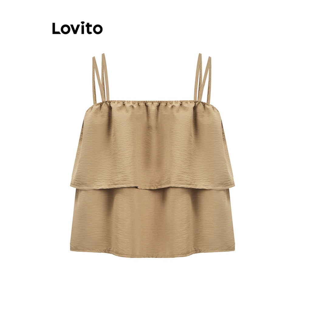 (Hot) Lovito Regata Elegante Lisa De Camada Dupla Para Mulheres L91ED391