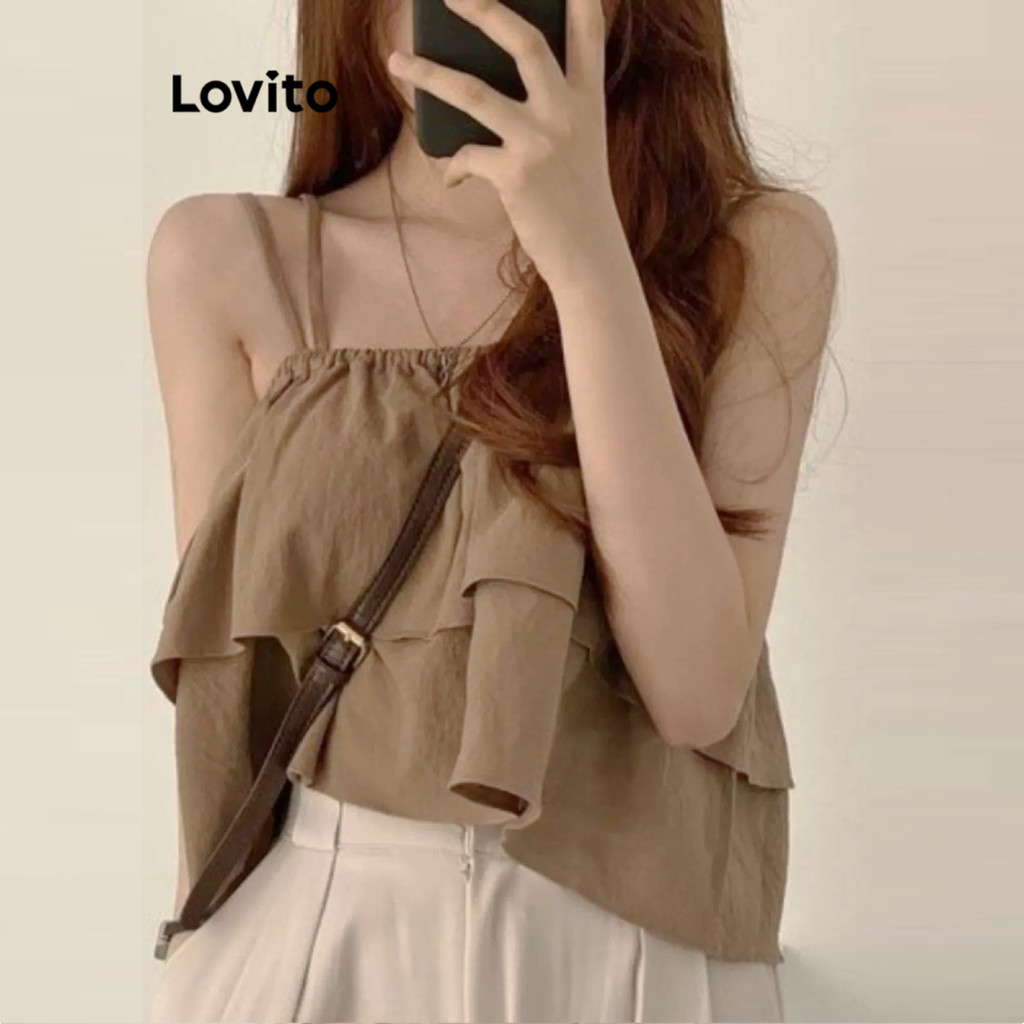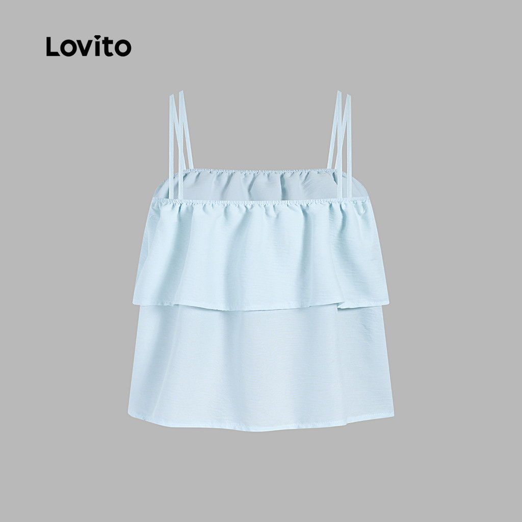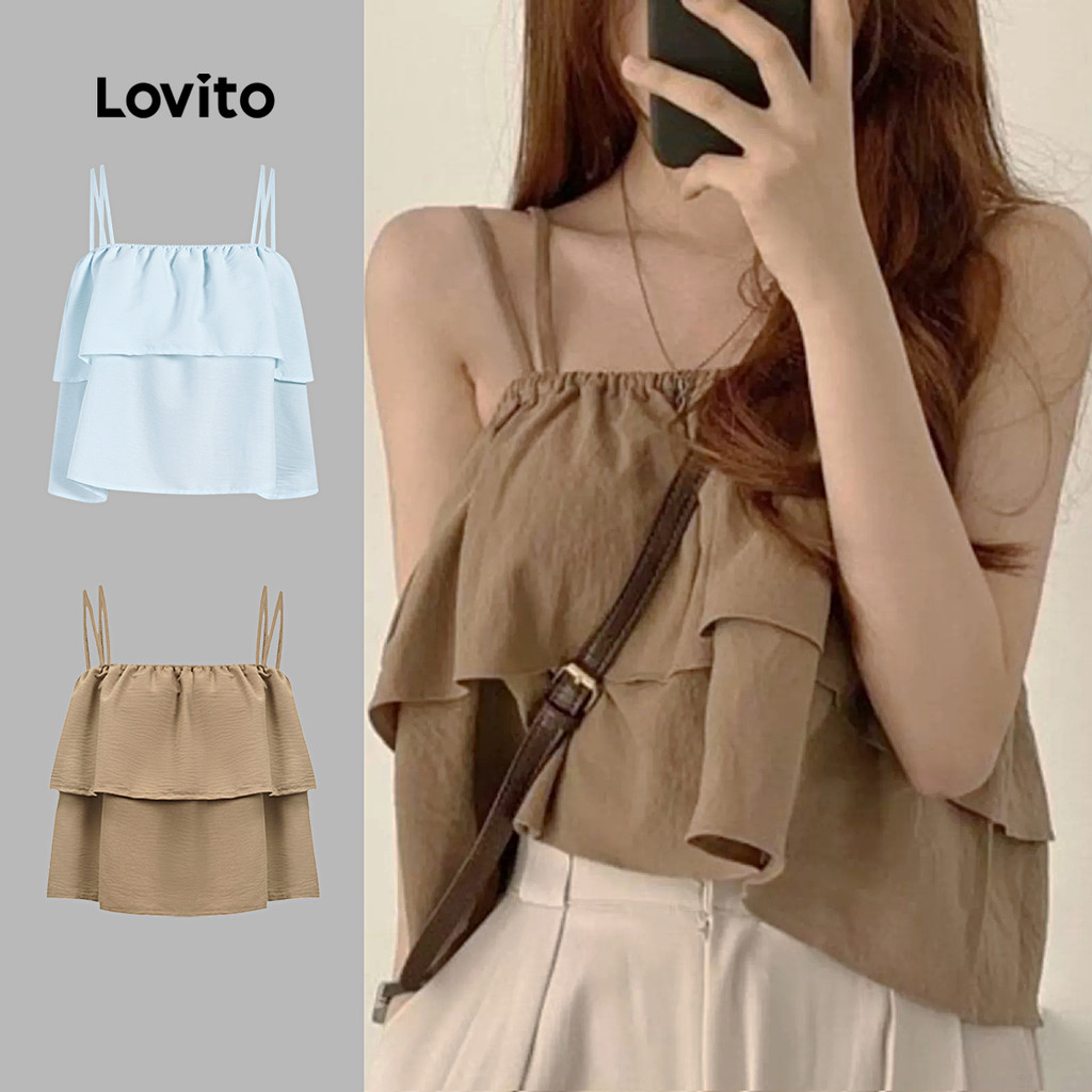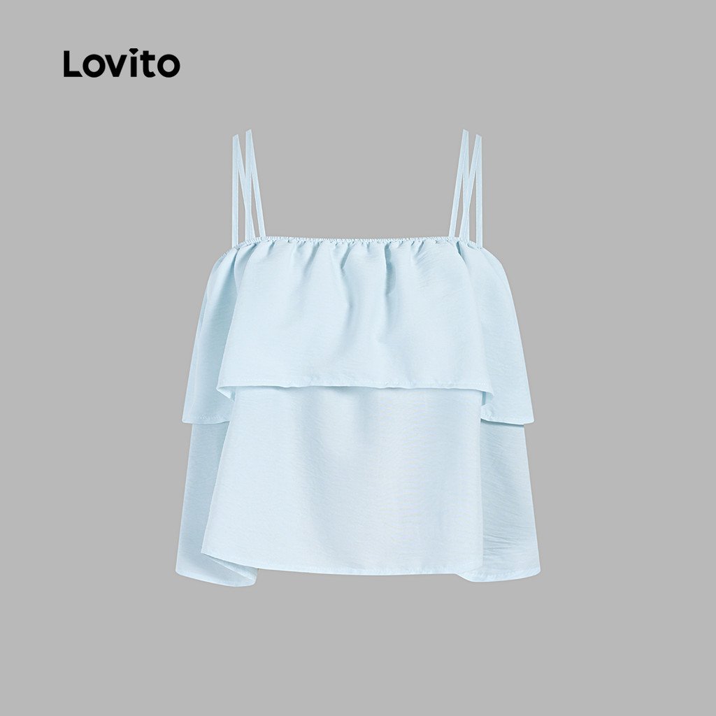 (Hot) Lovito Regata Elegante Lisa De Camada Dupla Para Mulheres L91ED391