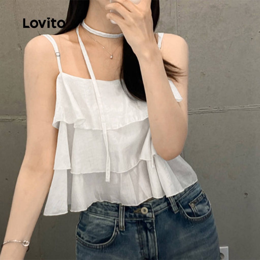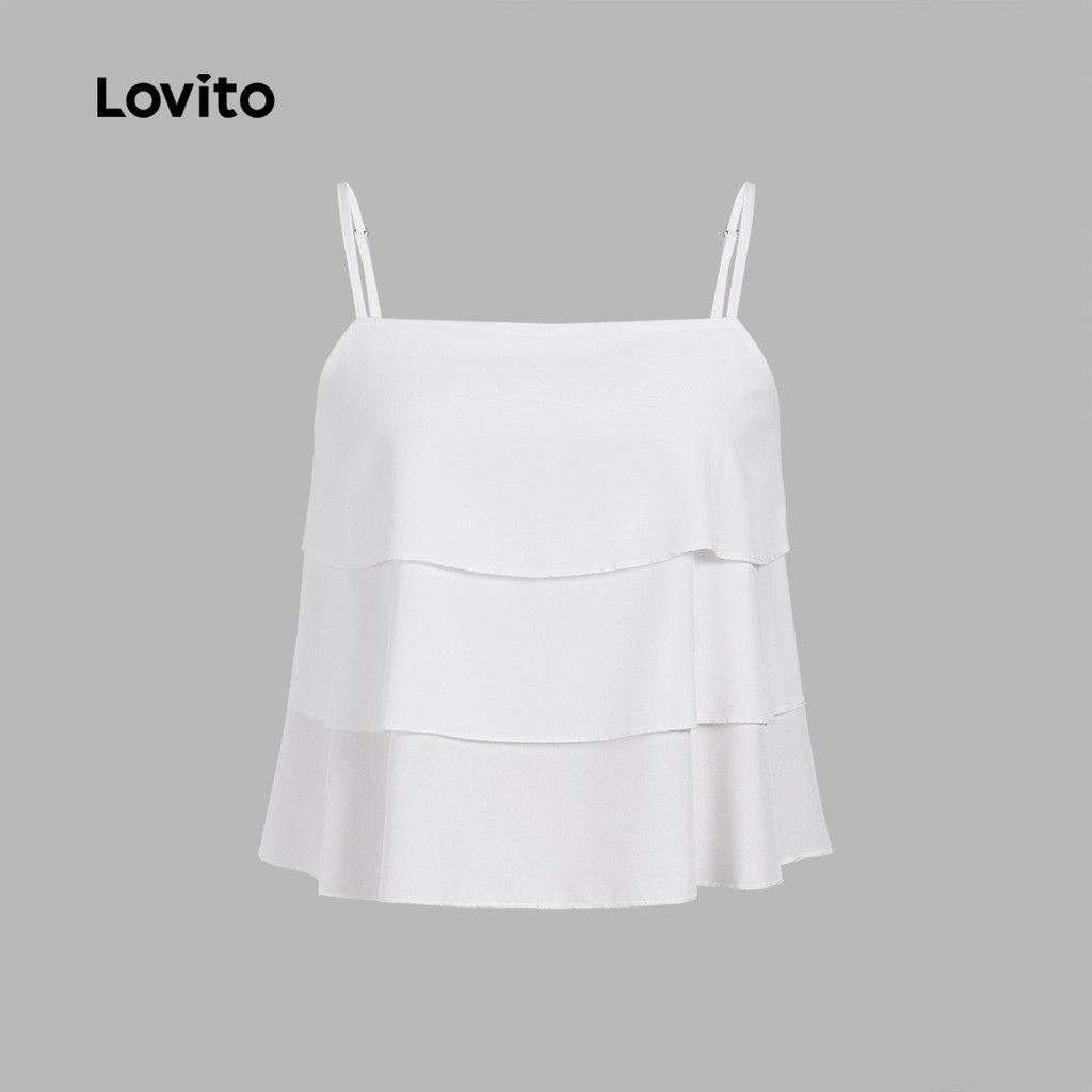 (New) Lovito Blusa Casual com Camadas em Camadas para Primavera/verão Branca para Mulheres L143ED211
