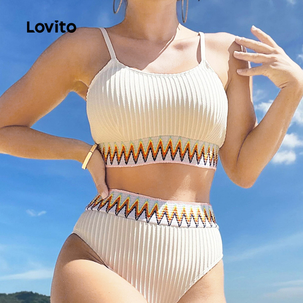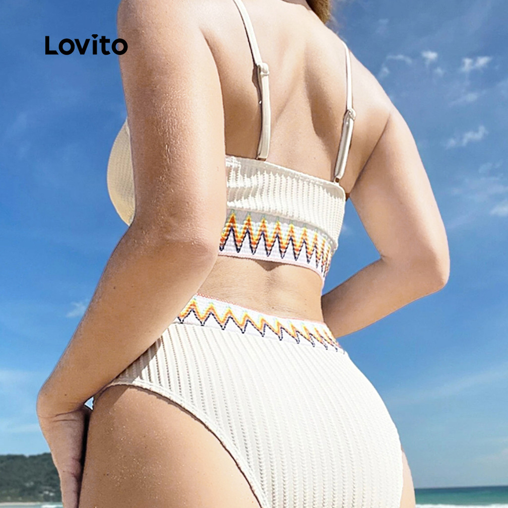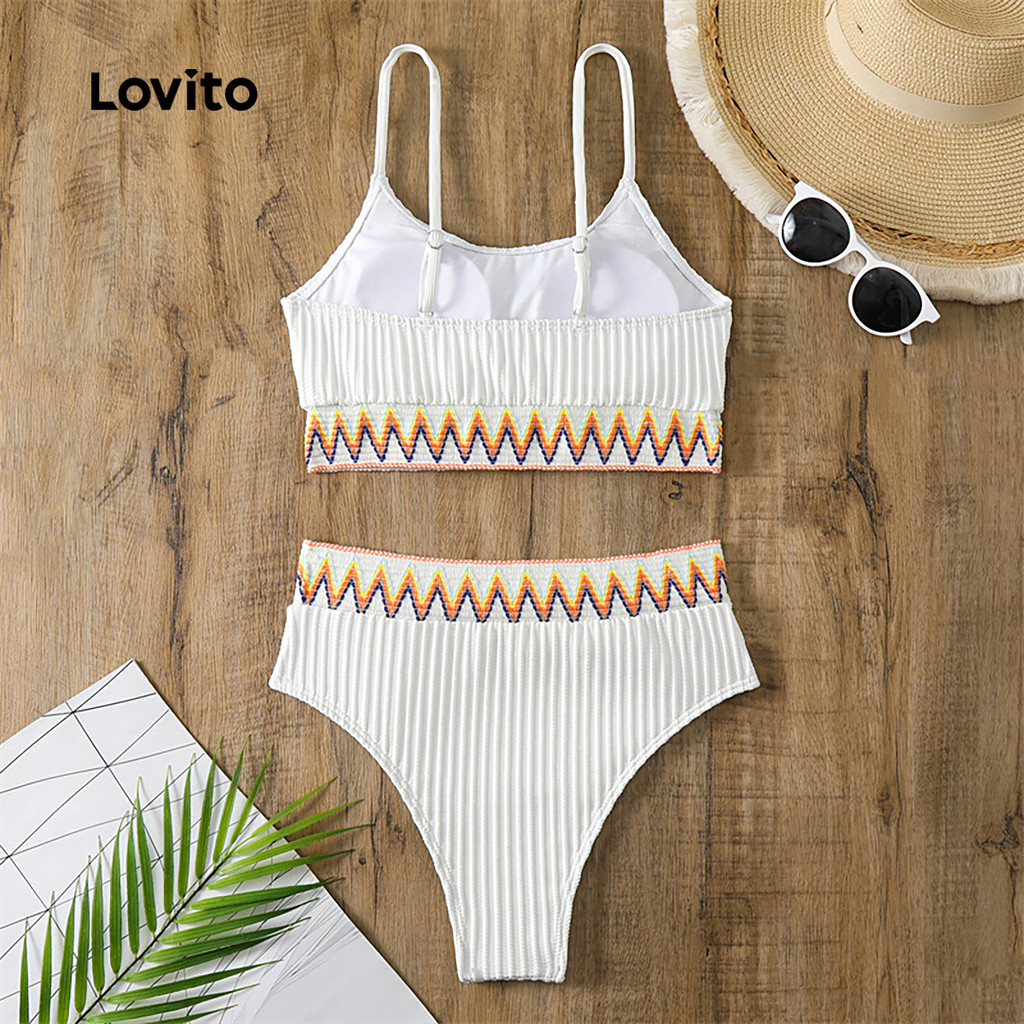 Lovito Conjuntos de Biquíni Boho de 2 Peças com Pregas para Primavera/verão Conjuntos de Biquíni Branco LNE130X017