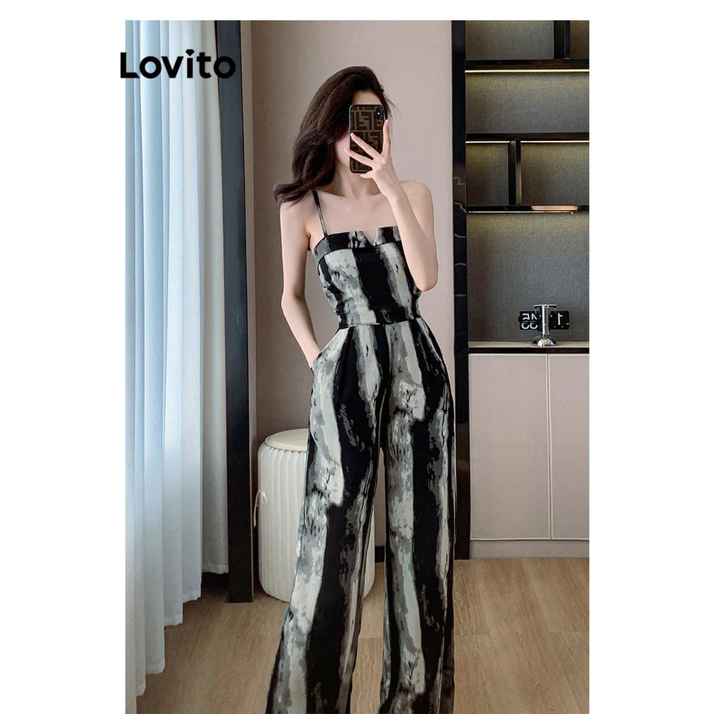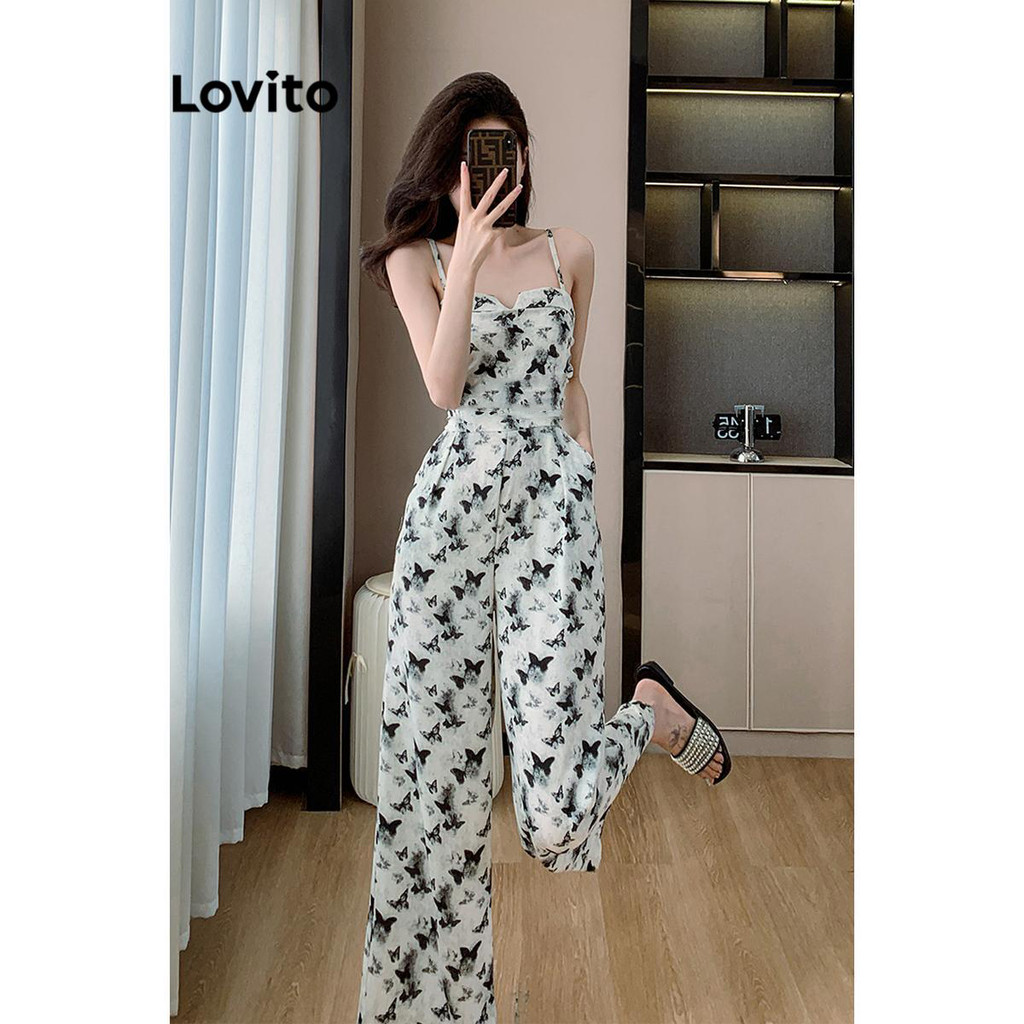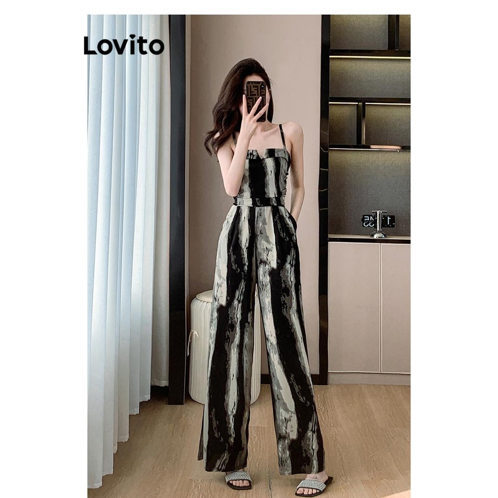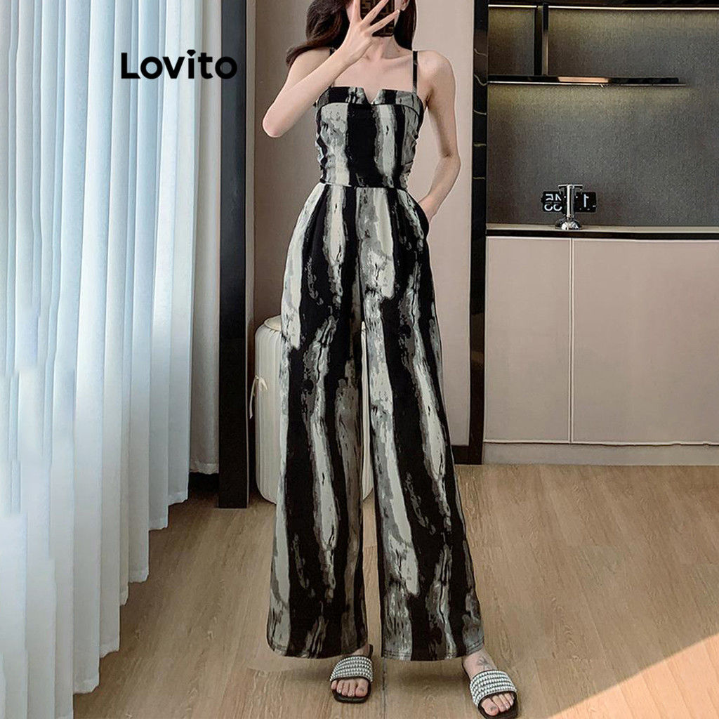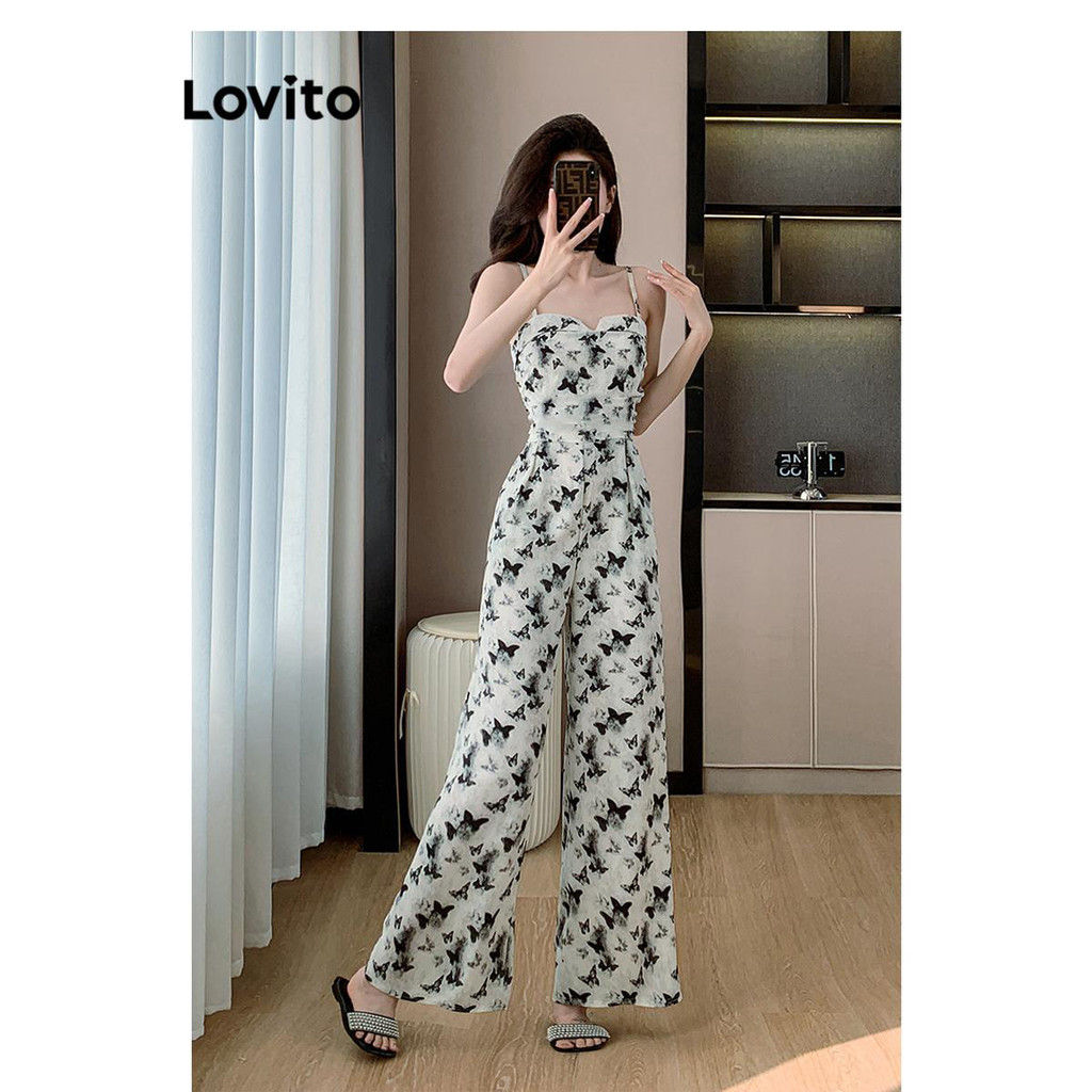 Lovito Macacão Casual Com Estampa De Plantas Em Jacquard E Babados Verão/primavera Para Mulheres LNE70803