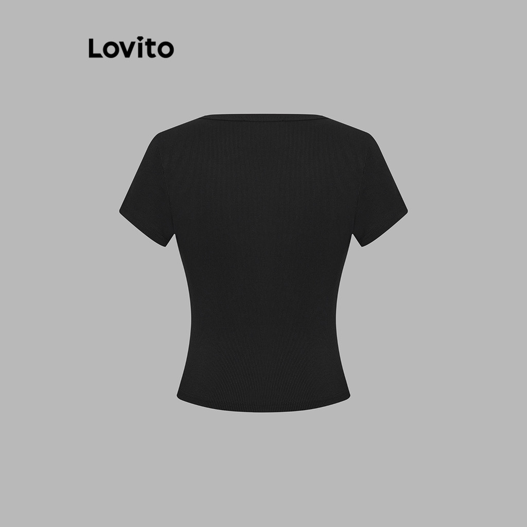 Lovito Camiseta Casual Com Botões Lisos E Canelados Para Mulheres L106AD194