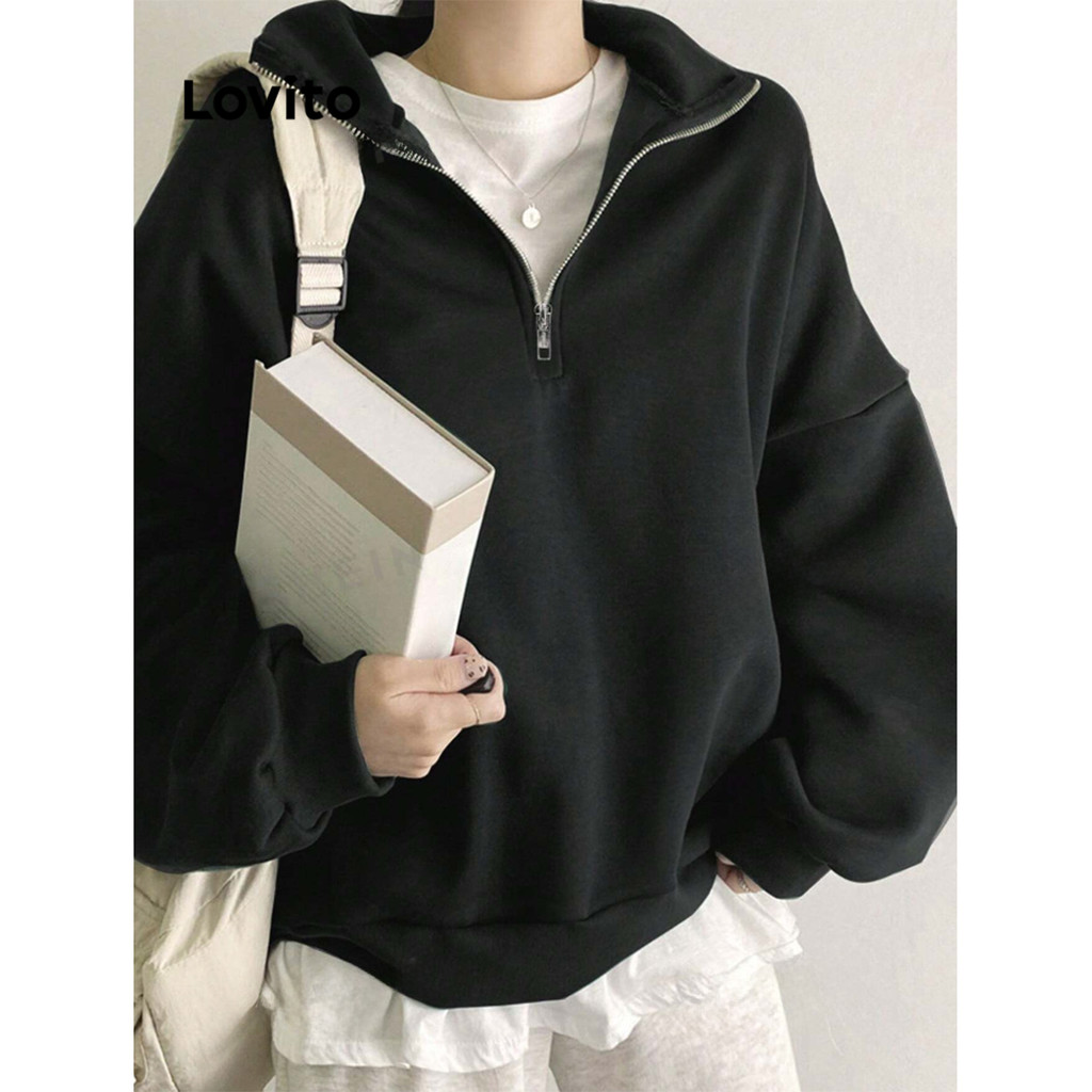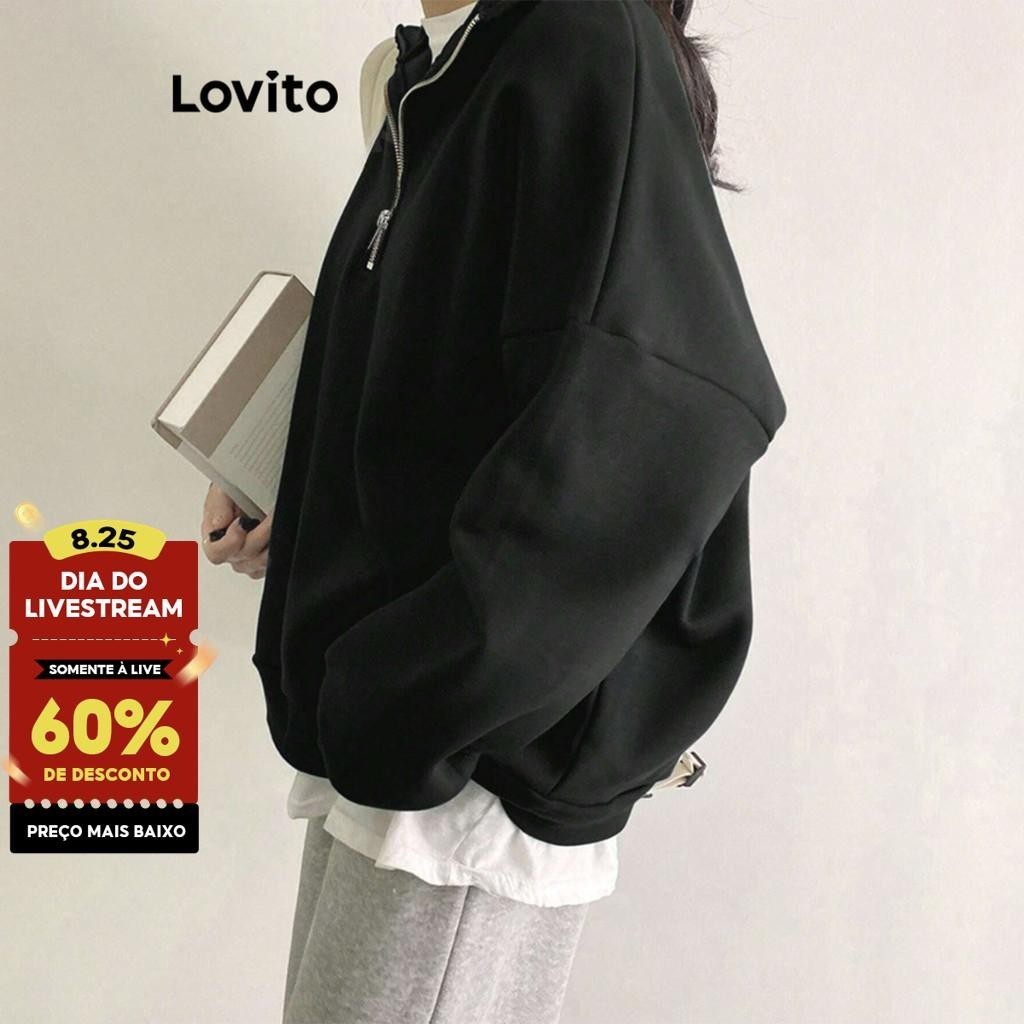 Lovito Moletom Casual Com Zíper Liso Para Mulheres L99ED130