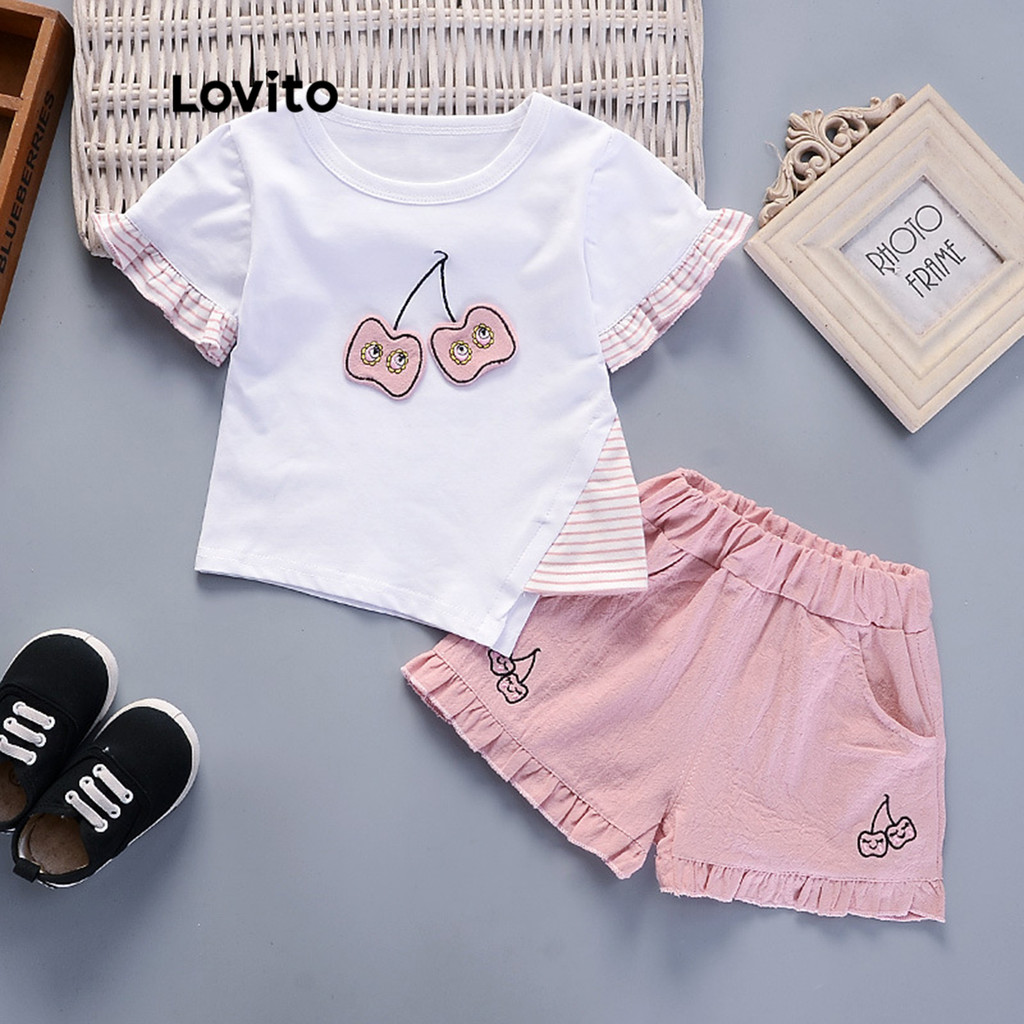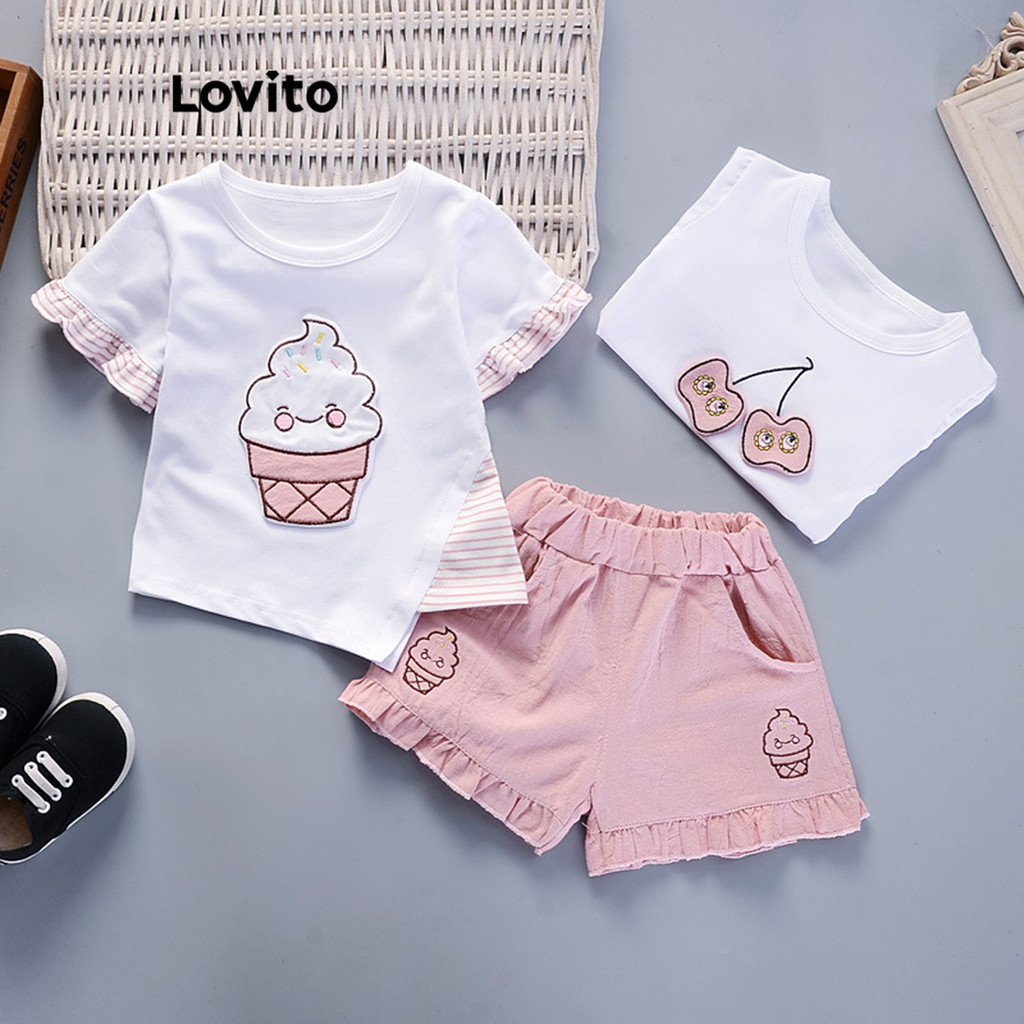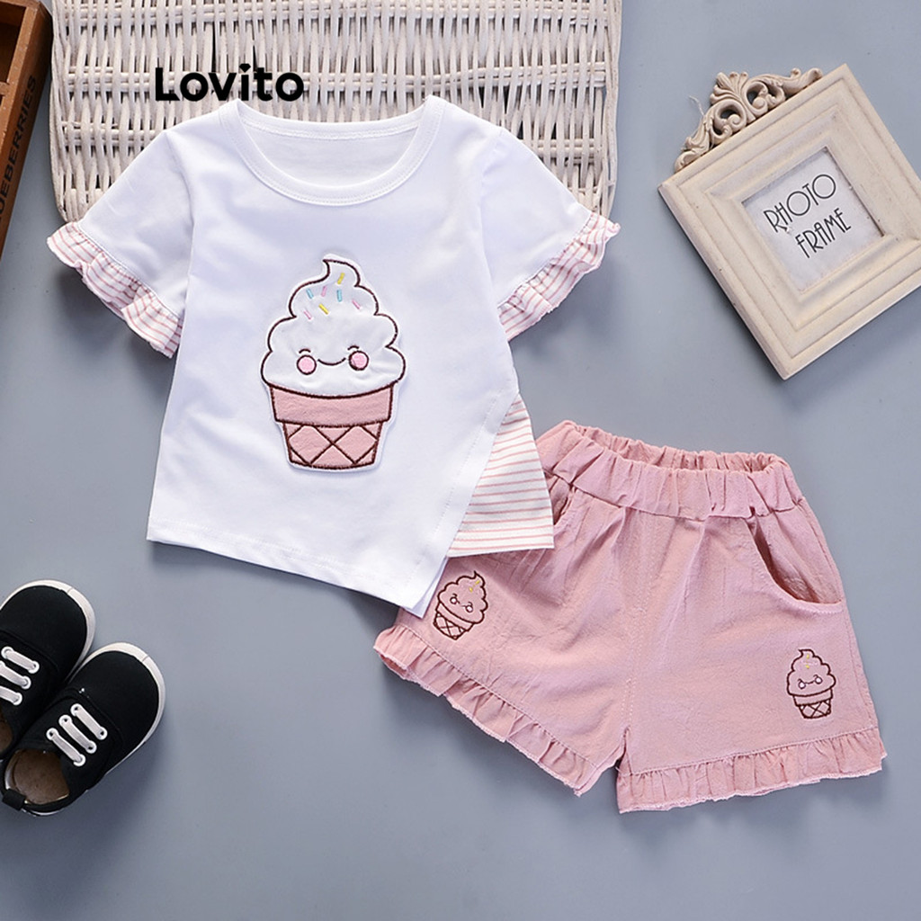 Lovito Conjuntos de shorts de bolso com padrão assimétrico de desenho animado fofo para bebê LNA84026