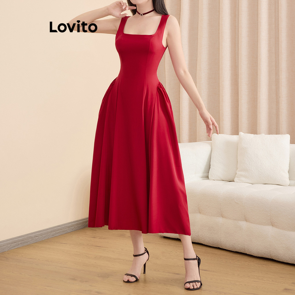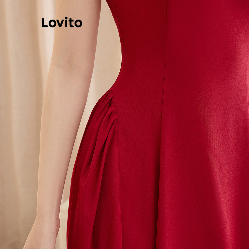 Lovito Vestido Casual Liso Com Drapeado E Amarração Nas Costas Em Tecido Texturizado Para Mulheres L121AD1083