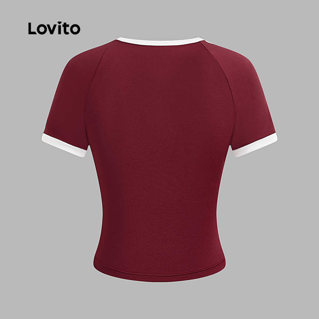 Lovito Camiseta Feminina Estilo Preppy Com Detalhes Contrastantes E Acabamento Liso L128ED158