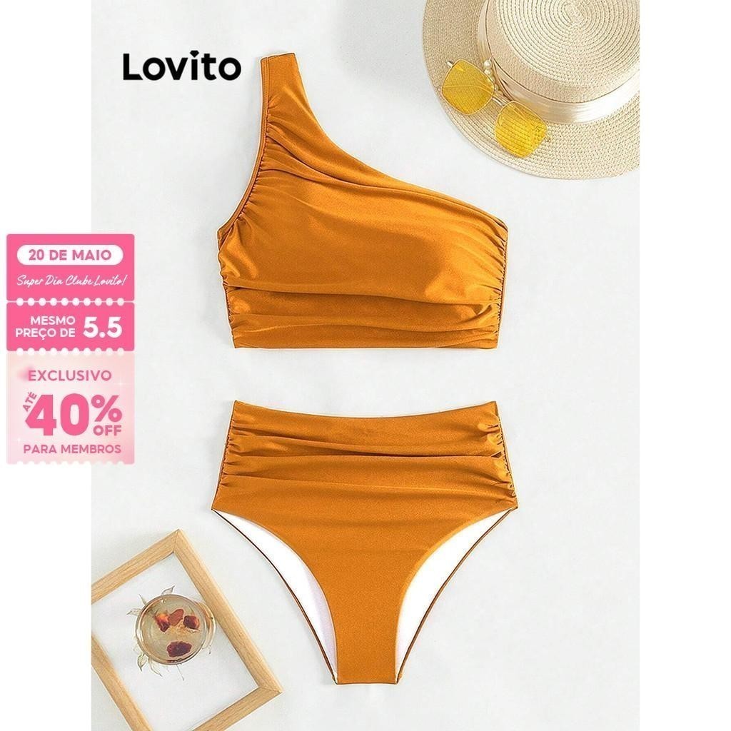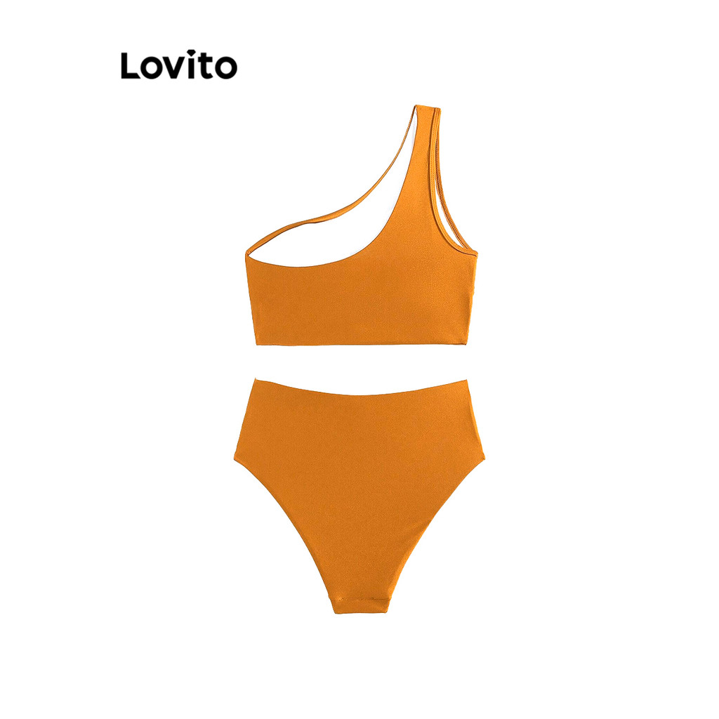 Lovito Conjuntos De Biquíni Casuais Conjuntos De Biquíni Assimétricos Lisos Para Mulheres LBL16822