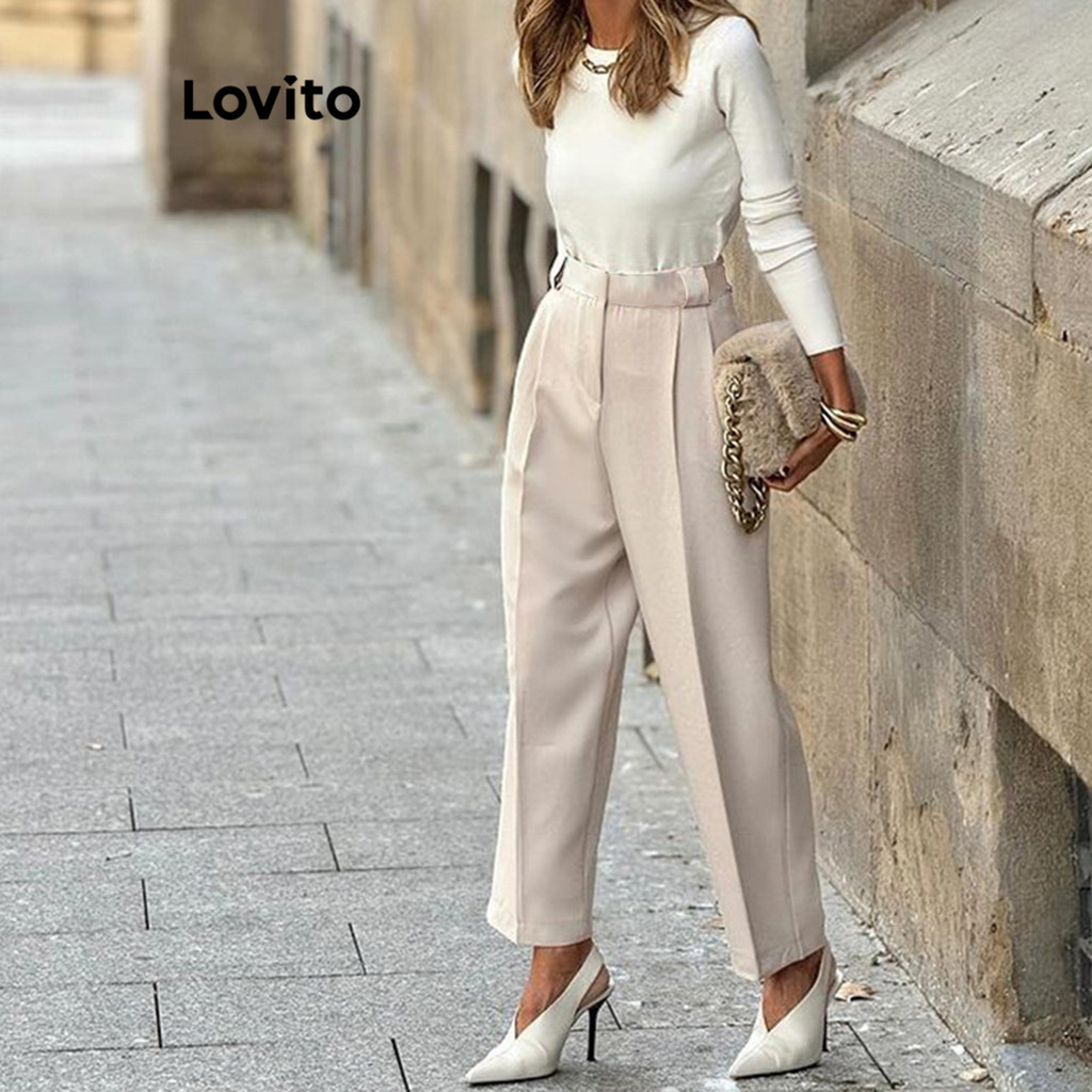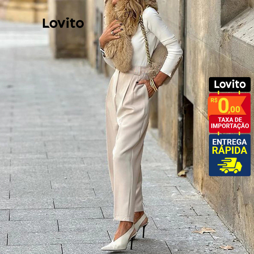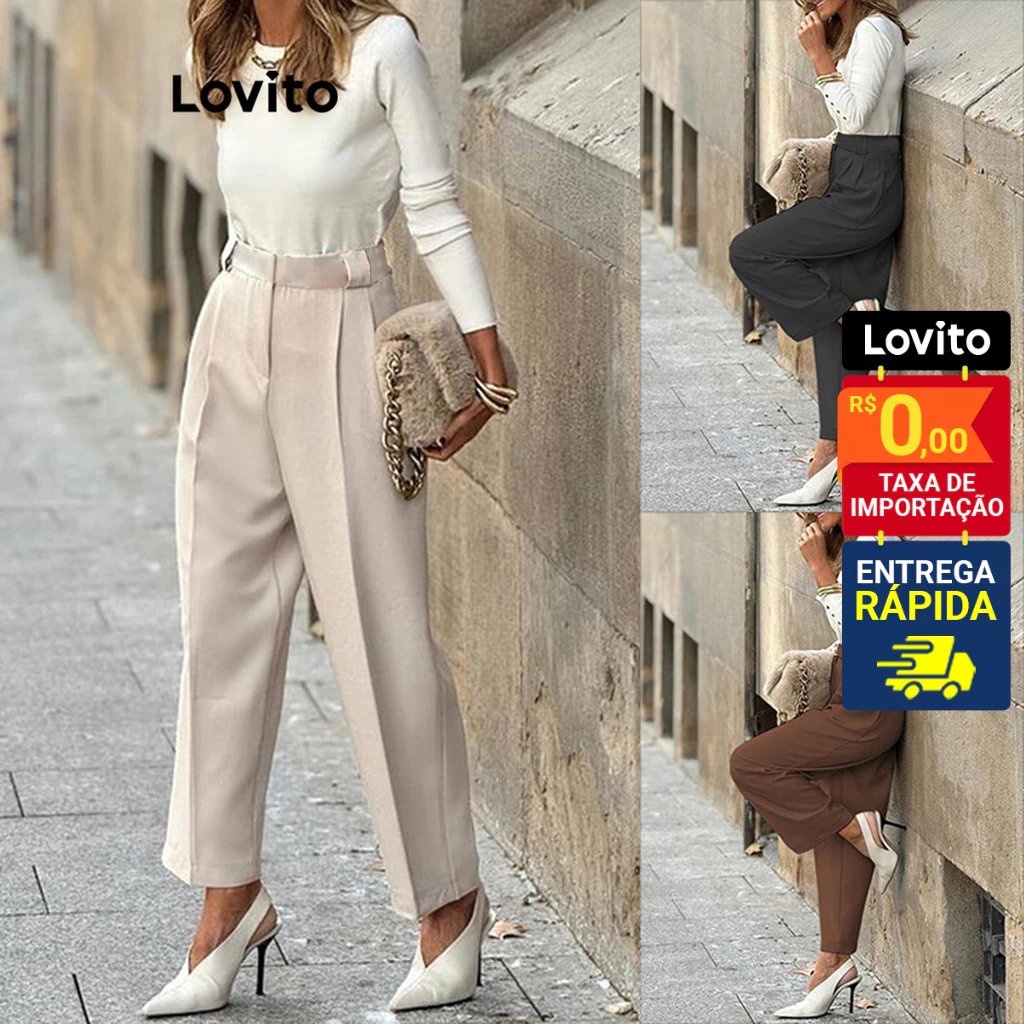 Lovito Calça Feminina Passantes Diferenciados LNL45130